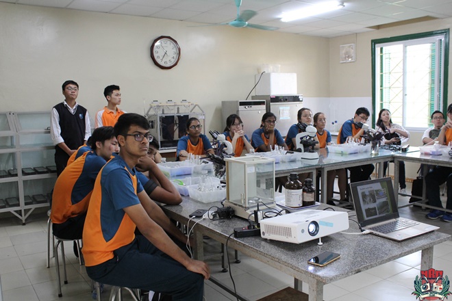 Các bạn học sinh chăm chú lắng nghe bài giảng từ giảng viên của Khoa Sinh học