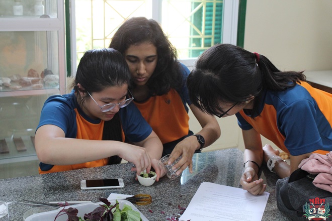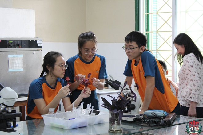 Các bạn học sinh cùng nhau thực hành thí nghiệm Sinh học