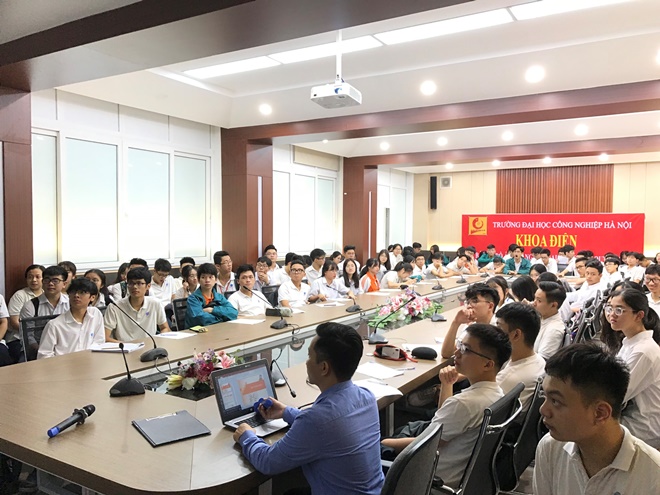 Hoạt động đầu tiên tại hội trường Khoa Công nghệ kỹ thuật điện, dưới sự hướng dẫn của thầy Nguyễn Quang Thuấn – Giảng viên Trường Đại học Công nghiệp Hà Nội. Các học sinh đã cùng nhau tìm hiểu tổng quan về ngành điện, hệ thống truyền tải và phân phối điện ở Việt Nam. Bên cạnh đó các học sinh lớp 12 cũng được hướng dẫn các biện pháp an toàn về điện.