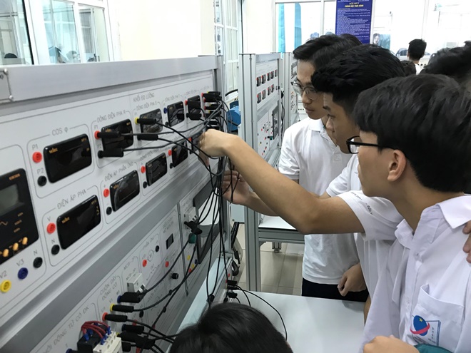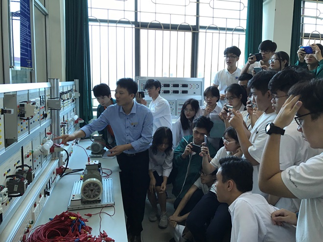 Thay vì học lí thuyết trên lớp với thầy cô, ở đây học sinh được học lí thuyết kết hợp với thực hành tại chỗ giúp cho những lí thuyết tưởng chừng rất khô khan kia trở nên đơn giản và được ứng dụng rất nhiều trong cuộc sống. Sự mở rộng không gian lớp học tại giảng đường Đại học Công nghiệp Hà nội cũng mang lại nhiều trải nghiệm mới lạ: Những câu hỏi: Điện được sản xuất từ đâu và truyền tải như thế nào được giải thích trực quan tại phòng thực hành truyền tải điện. Các máy biến áp 1 pha, 3 pha, hệ thống truyền tải điện, máy phát điện xoay chiều 1 pha, 3 ba pha, động cơ không đồng bộ ba pha được các học sinh thích thú tìm hiểu. Các mạch điện mắc hình sao, mắc hình tam giác được các học sinh thực hành rất thành thạo. Những chủ đề thú vị nối tiếp nhau cùng với sự hướng dẫn tỉ mỉ, chi tiết đến từ các Giảng viên Trường Đại học Công nghiệp Hà Nội đã cuốn hút các học sinh khối 12.