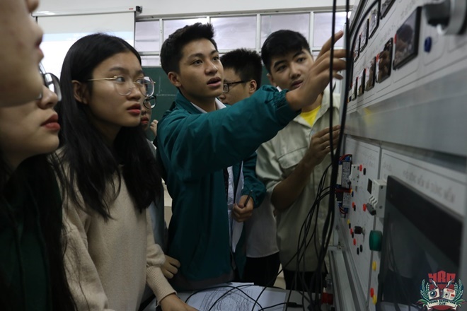 Bên cạnh việc học lí thuyết môn Vật lí và Công nghệ, các học sinh khối 12 được chia thành các nhóm nhỏ, cùng nhau thực hành các chủ đề vừa được học. Dưới sự hướng dẫn kĩ càng của các Giảng viên cùng sự nhiệt tình của các học sinh khối 12, bầu không khí tại khoa Điện của Trường Đại học Công nghiệp Hà Nội chẳng mấy chốc đã trở nên sôi nổi.
