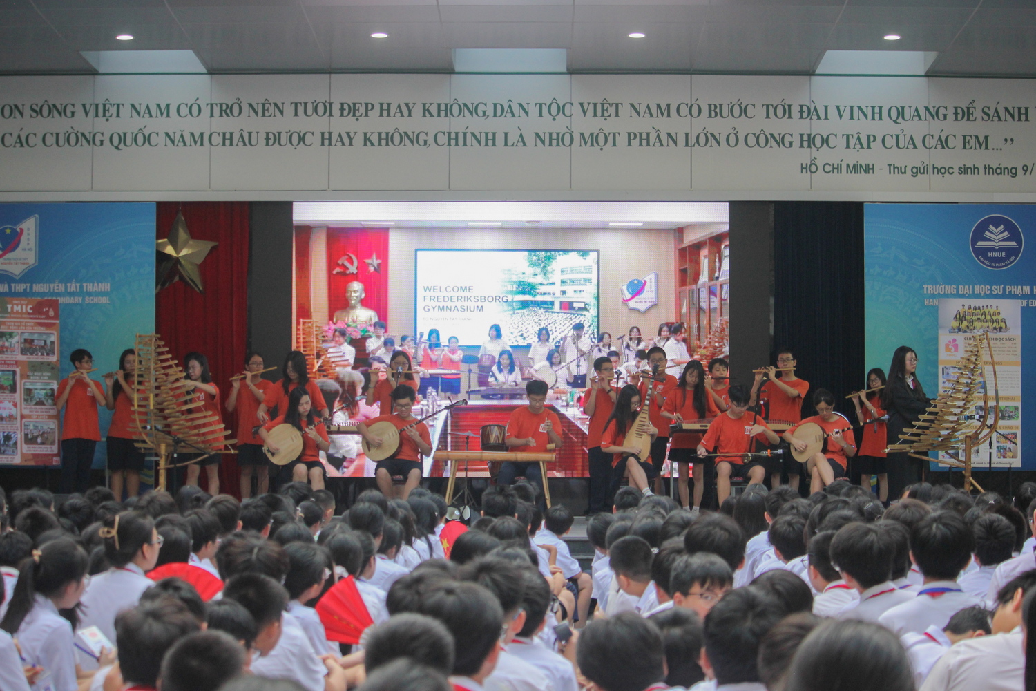 Màn trình diễn “Một vòng Việt Nam” của CLB TMIC mang âm hưởng truyền thống và hiện đại, thu hút sự chú ý của toàn trường