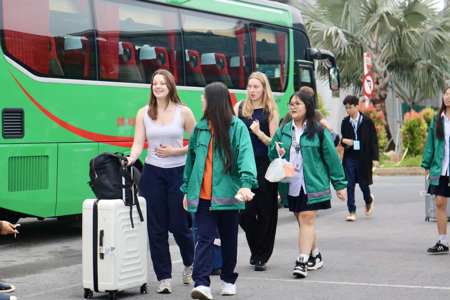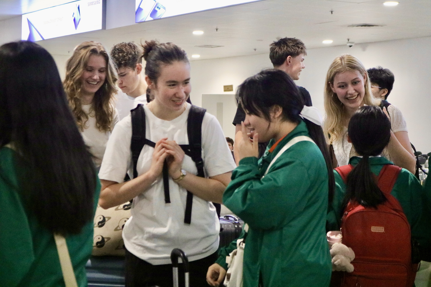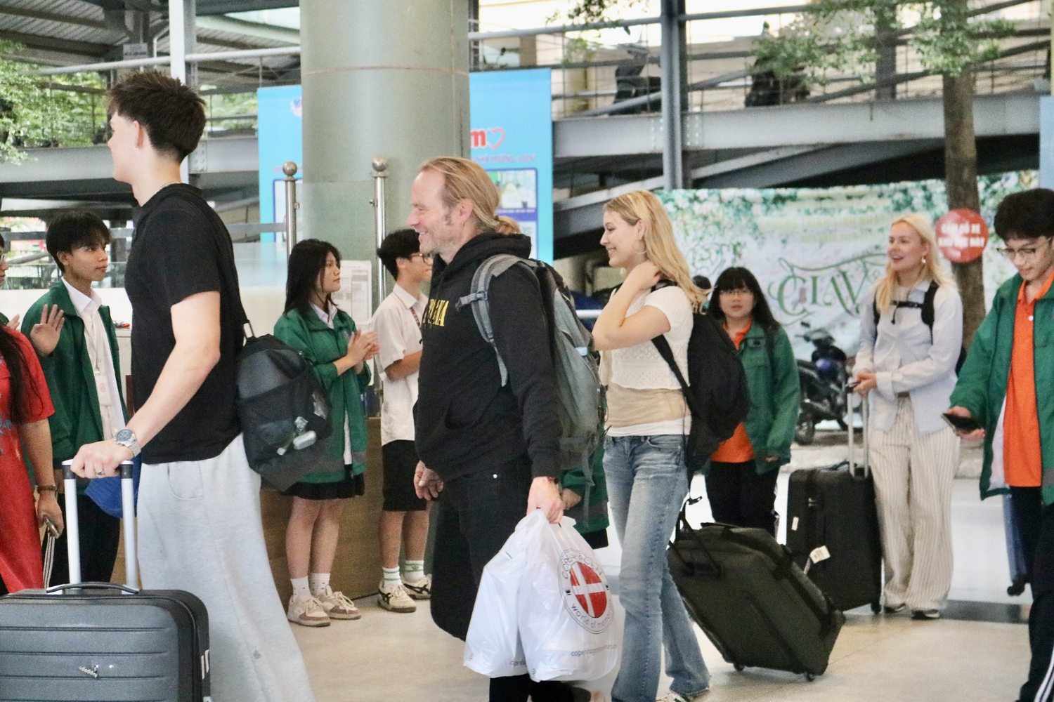 Học sinh trường Nguyễn Tất Thành vui mừng chào đón giáo viên và học sinh trường Frederiksborg Gymnasium tại sân bay Nội Bài