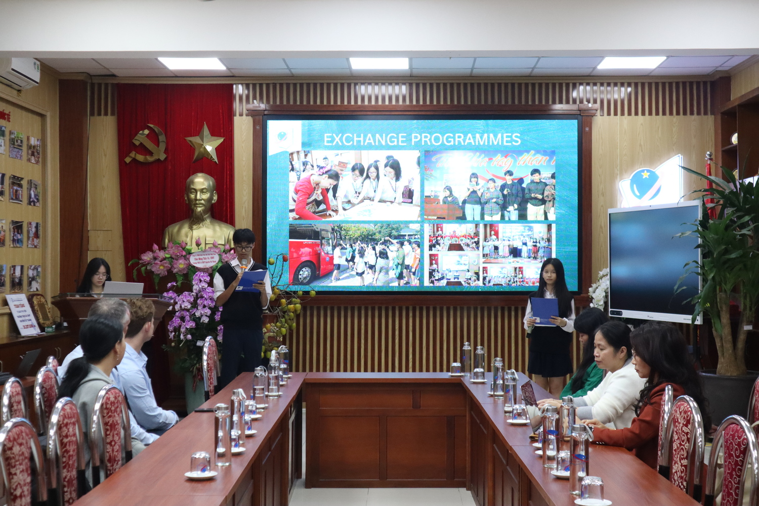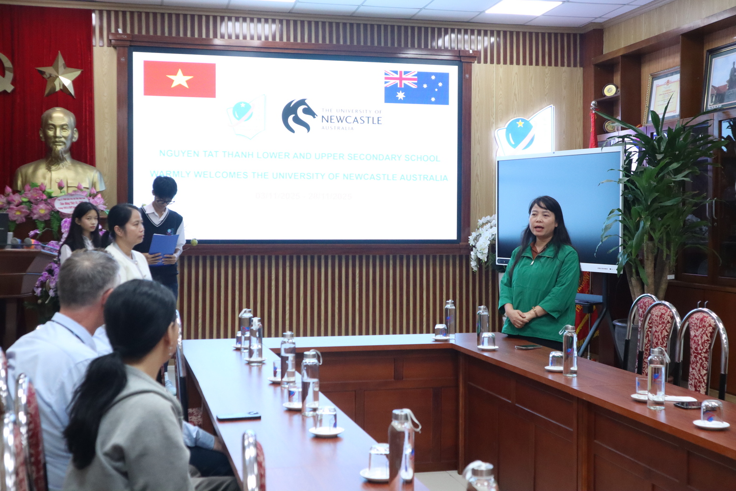 Trong buổi đón tiếp thân tình, đoàn giảng viên và giáo sinh của Đại học Newcastle đã được lắng nghe phần giới thiệu tổng quan về cơ sở vật chất, chương trình giảng dạy và phương châm giáo dục của nhà trường. Các thầy cô và giáo sinh đến từ Úc còn đặc biệt ấn tượng với phần giới thiệu đầy tự tin của các thành viên Câu lạc bộ Tiếng Anh (E4E), cùng những lời chào đón và chia sẻ chân thành từ các thầy cô trường Nguyễn Tất Thành. Những khoảnh khắc ấy đã trở thành ấn tượng đầu tiên đầy tốt đẹp mà thầy trò nhà trường gửi tới những vị khách đến từ “xứ sở chuột túi”.