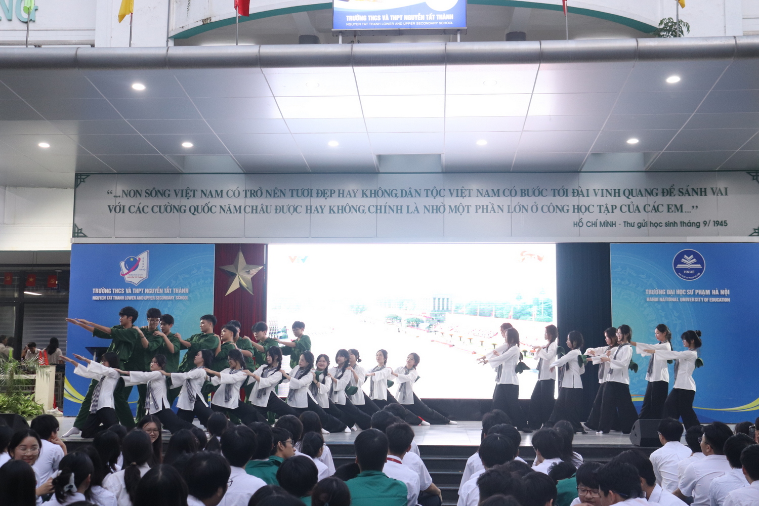 Ngày 22/12/2025, hòa chung không khí trang nghiêm và xúc động của cả nước hướng về Ngày thành lập Quân đội Nhân dân Việt Nam, Trường THCS và THPT Nguyễn Tất Thành đã tổ chức buổi sinh hoạt dưới cờ chào mừng kỉ niệm 81 năm ngày truyền thống của quân đội anh hùng. Đây là dịp để thầy và trò nhà trường cùng ôn lại lịch sử vẻ vang, bày tỏ lòng tri ân sâu sắc tới những thế hệ đã hiến dâng tuổi trẻ, máu xương vì độc lập, tự do của Tổ quốc.