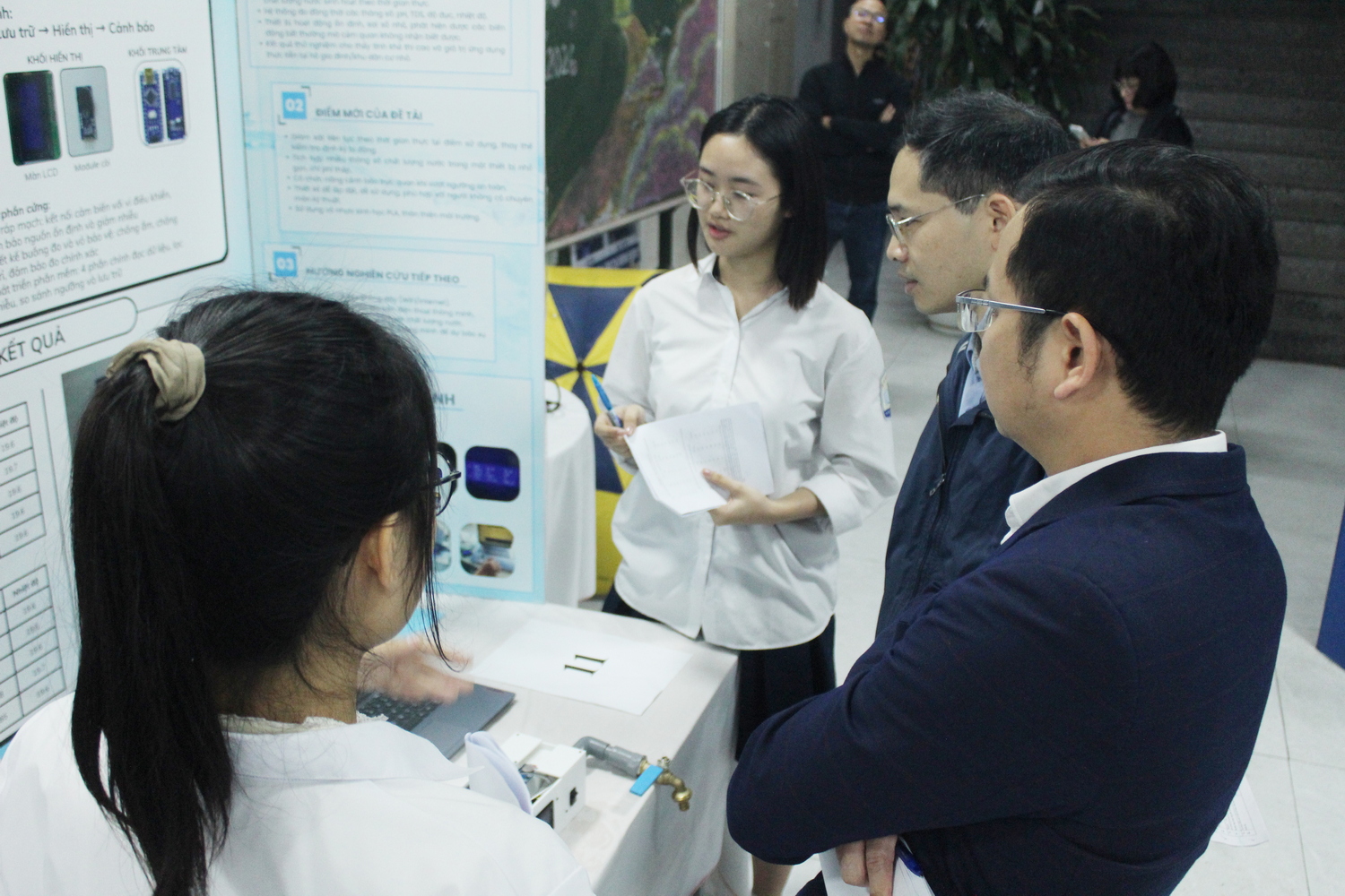 Các đội thi say mê trình bày đề tài khoa học và trao đổi cùng các chuyên gia