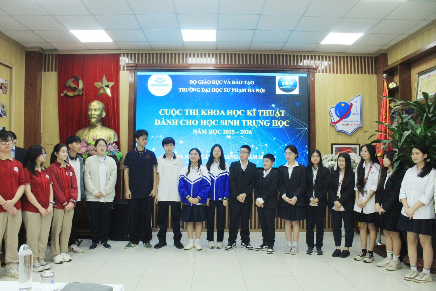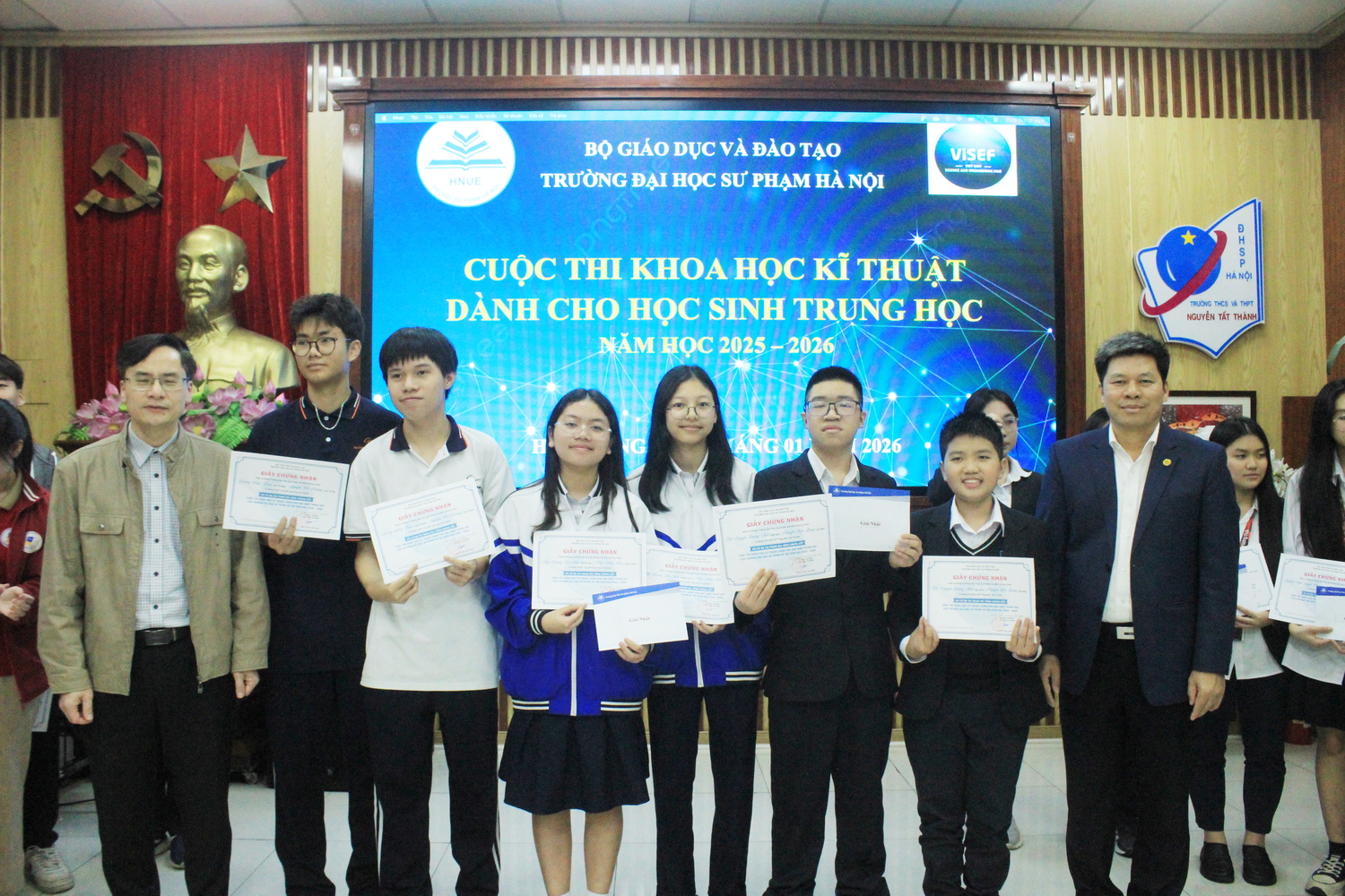 Kết thúc cuộc thi Khoa học kĩ thuật dành cho học sinh Trung học năm học 2025-2026 cấp Trường Đại học Sư phạm Hà Nội, các nhóm dự thi đã xuất sắc mang về 3 giải Nhất, 8 giải Nhì, 12 giải Ba và 15 giải Khuyến khích. Các nhóm học sinh đạt giải Nhất được lựa chọn để tiếp tục bước vào cuộc thi Khoa học kĩ thuật cấp Quốc gia, trong đó có 02 đề tài của Trường THPT Chuyên: “Nghiên cứu chế phẩm từ vi khuẩn Bacillus mobilis và Pseudomonas aeruginosa tạo màng sinh học trên vật liệu Vermiculite để xử lý ô nhiễm một số hợp chất vòng thơm” - Hoàng Khải Lâm (10 Sinh) và Nguyễn Chí Khang (10 Địa); “Phát triển bộ học liệu số hỗ trợ học sinh khuyết tật ứng phó với biến đổi khí hậu và thiên tai” - Ngô Hoàng Hà Anh và Ngô Nhật Mai (10 Văn 1). Trường THCS và THPT Nguyễn Tất Thành (Hà Nội) đạt 1 giải Nhất với đề tài “Xây dựng phần mềm bản đồ hành chính mới và du lịch Việt Nam” của Nguyễn Hải Long (8A6) và Vũ Nguyễn Quang Anh (8A5).