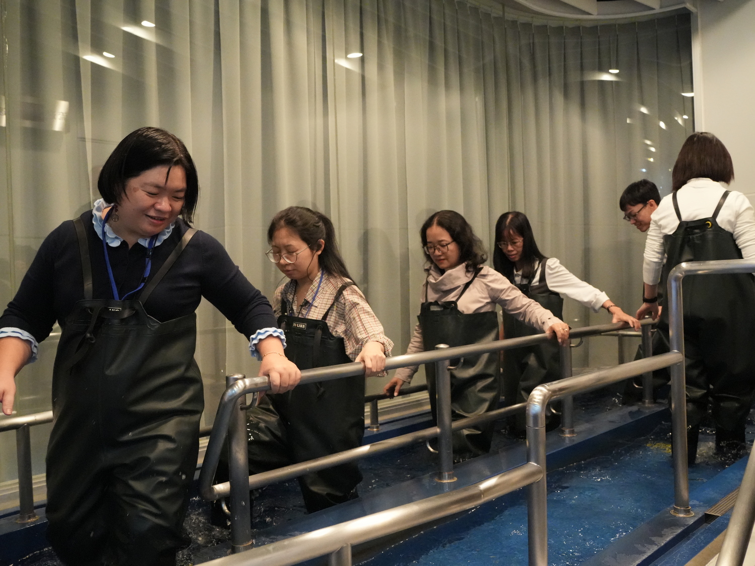 Đoàn giáo viên thực hành trải nghiệm di chuyển trong điều kiện lũ lụt