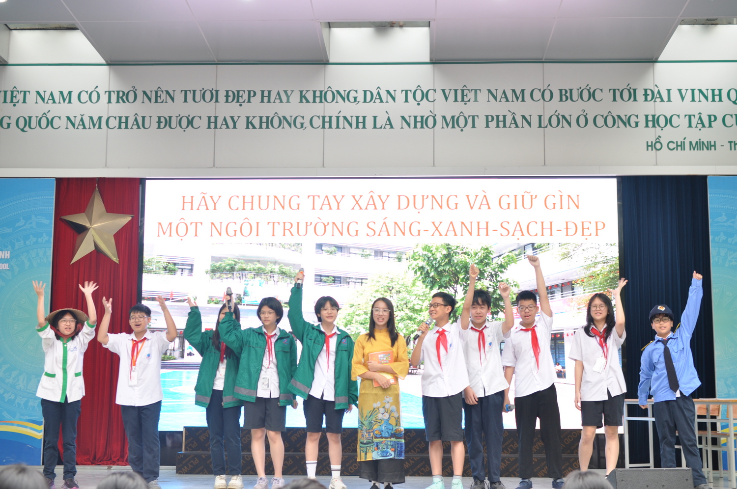 Giờ sinh hoạt dưới cờ chủ đề “Xây dựng trường học sáng - xanh - sạch - đẹp” tới từ tập thể ba lớp 7A2, 7A4, 7A6