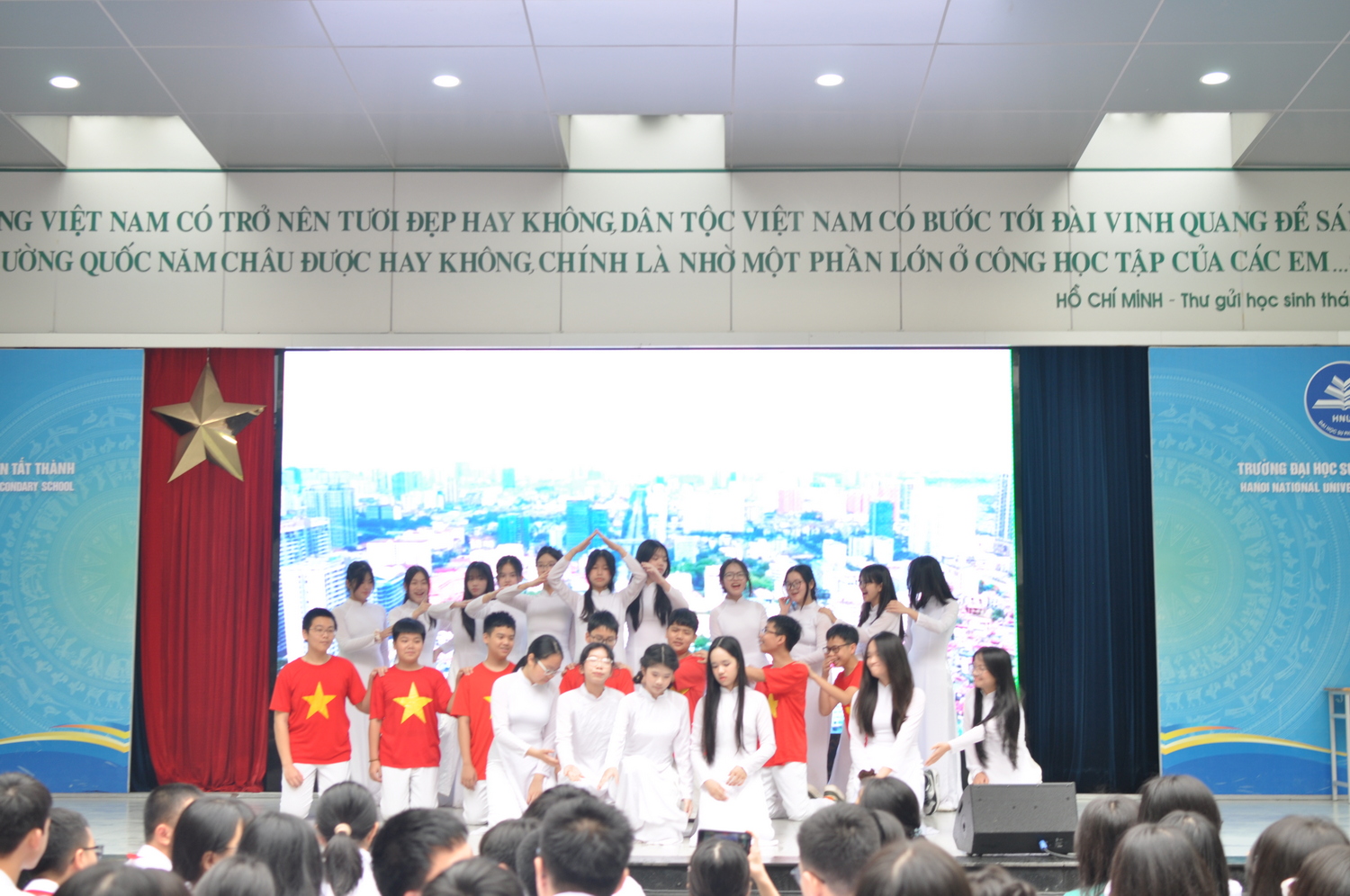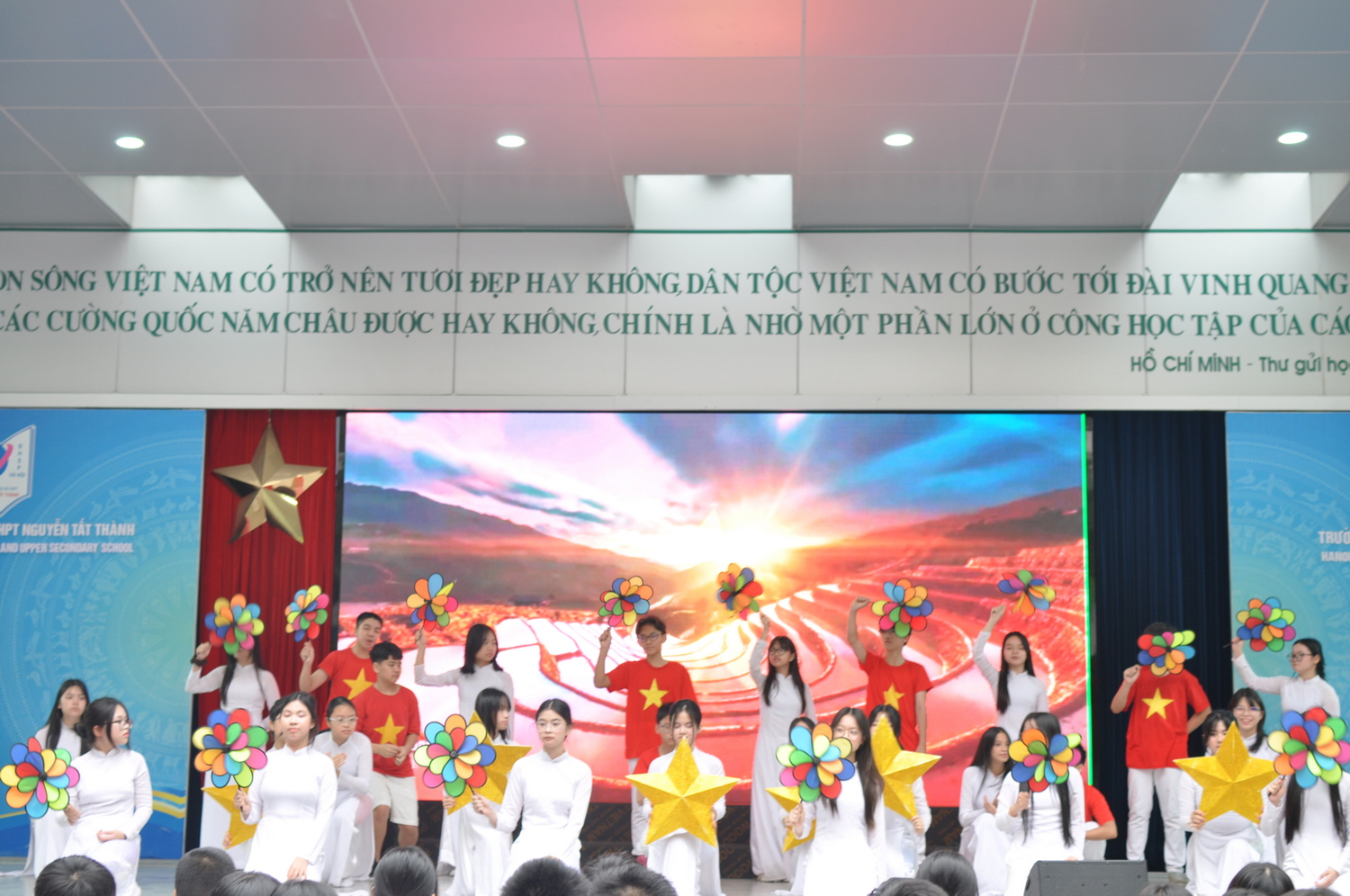 Tiết mục múa mashup “Ngàn ước mơ Việt Nam” và “Thêm yêu ngày nắng đến trường” đầy đầy rộn ràng đến từ hai tập thể lớp 7A2 và 7A4