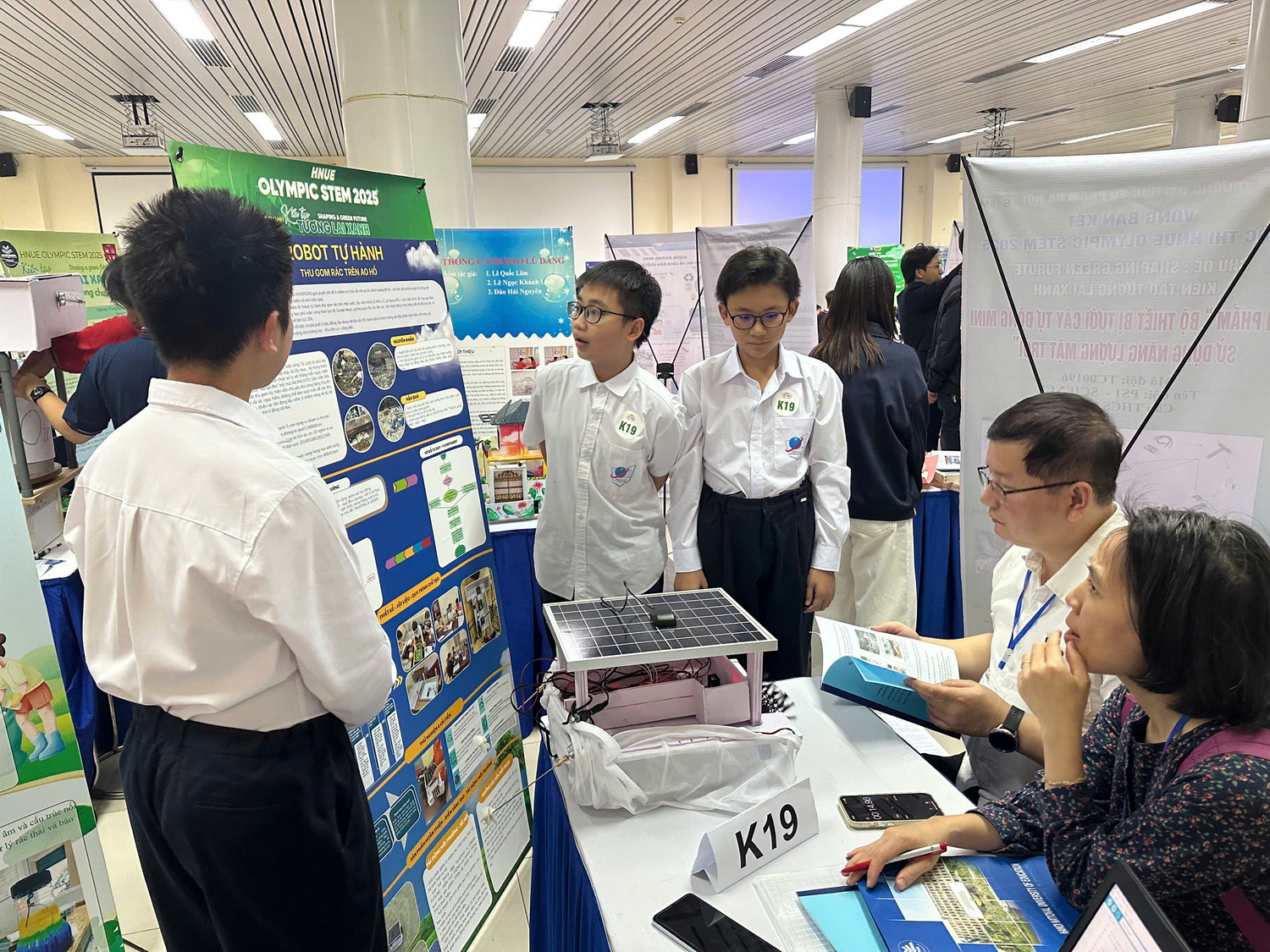 Nhằm tăng cường giáo dục STEM trong giáo dục phổ thông, Trường Đại học Sư phạm Hà Nội tổ chức cuộc thi “HNUE Olympic STEM 2025” - mùa thi đầu tiên với chủ đề “Shaping a Green Future - Kiến tạo tương lai xanh”. Cuộc thi tạo cơ hội để học sinh trên toàn quốc vận dụng kiến thức liên môn STEM nhằm đề xuất các giải pháp sáng tạo cho những vấn đề thực tiễn. Vào thứ Bảy (6/12/2025), cuộc thi đã diễn ra tại Nhà thi đấu Trường Đại học Sư phạm Hà Nội, với sự góp mặt của các đội thi xuất sắc trên toàn quốc.