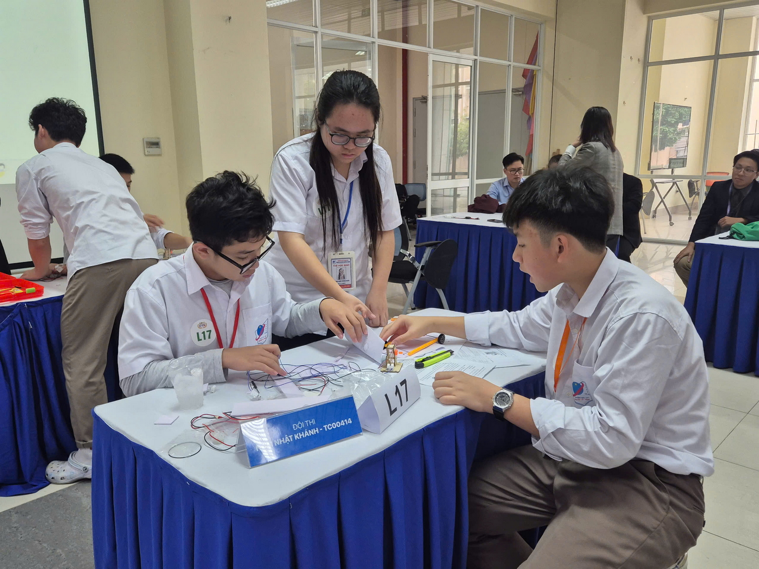 Đến với cuộc thi HNUE Olympic STEM, các đội thi còn được bước vào hành trình trải nghiệm thú vị tại các trạm STEM trong khuôn viên Trường Đại học Sư phạm Hà Nội. Từng nhóm luân phiên tham gia những “chặng đường thử thách” đầy màu sắc như Trạm chờ may mắn, VR Cuộc phiêu lưu kỳ thú hay Xưởng phép thuật Hóa học; mỗi trạm là một trải nghiệm riêng, một thử thách mới mẻ. Các học sinh say mê thử nghiệm, giải mã, lập trình, khám phá sức mạnh của khoa học và sáng tạo. Không khí vừa học vừa chơi ấy đem đến cho mỗi bạn một trải nghiệm khó quên, đồng thời khơi dậy niềm đam mê STEM với tương lai xanh phía trước.