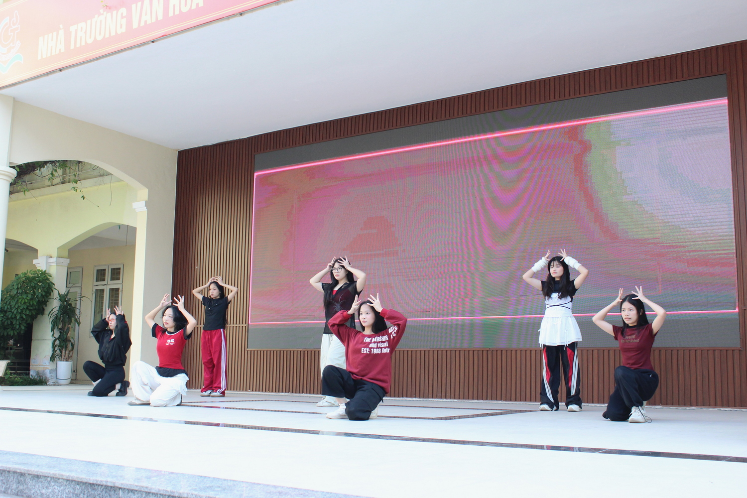 Ca khúc “Chiếc khăn Piêu” và tiết mục nhảy hiện đại của học sinh THCS và THPT Nguyễn Tất Thành tạo nên không khí sôi động, cổ vũ tinh thần cho các thí sinh