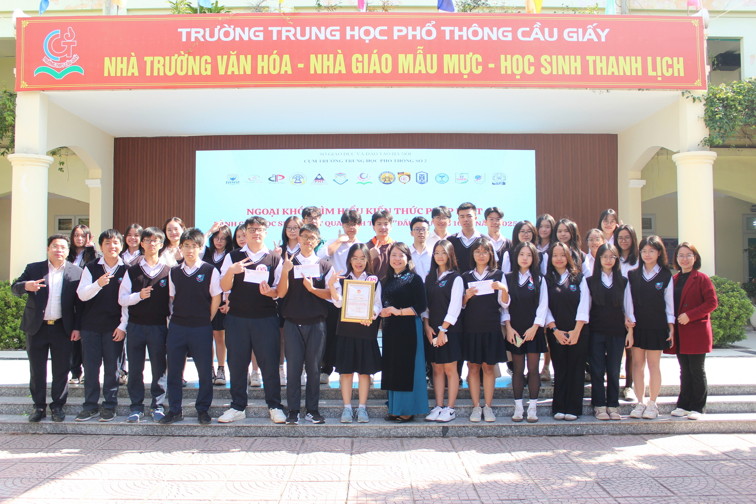 Cuộc thi Tìm hiểu kiến thức pháp luật cụm trường THPT số 2 vừa được tổ chức vào thứ Bảy (29/11/2025) vừa qua tại sân trường THPT Cầu Giấy. Sự tham gia của 14 đội tuyển đến từ các trường THPT trên địa bàn cụm đã cho thấy được niềm đam mê và ham học hỏi của học sinh. Hòa cùng với tinh thần nhiệt thành và nỗ lực, đội tuyển Trường THCS và THPT Nguyễn Tất Thành đã giành được giải Khuyến khích.