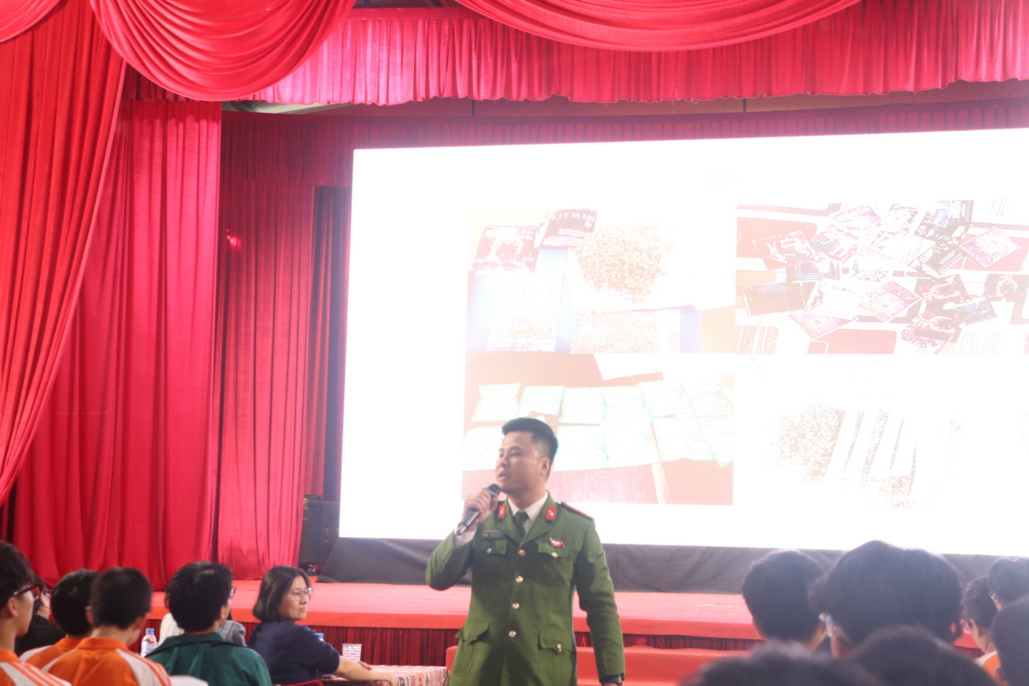 Trong khoảng thời gian buổi chiều, hoạt động trải nghiệm tiếp tục với buổi học chuyên đề về kĩ năng nhận diện và phòng tránh thuốc lá, thuốc lá điện tử và các chất gây nghiện. Thông qua những nội dung được trình bày dễ hiểu, tình huống thực tế và hình ảnh minh họa cụ thể, học sinh được cung cấp kiến thức cơ bản để phân biệt các loại chất gây nghiện cũng như nhận diện được những hình thức ngụy trang ngày càng tinh vi của ma túy trong đời sống hiện nay. Không dừng lại ở việc cung cấp thông tin, buổi học còn nhấn mạnh đến những hậu quả lâu dài mà các chất gây nghiện gây ra đối với sức khỏe thể chất, tinh thần và tương lai của mỗi con người. Từ đó, học sinh có cơ hội nhìn nhận vấn đề một cách nghiêm túc, hình thành ý thức tự bảo vệ bản thân và trang bị cho mình những kĩ năng cần thiết để chủ động phòng tránh các nguy cơ tiềm ẩn trong cuộc sống.