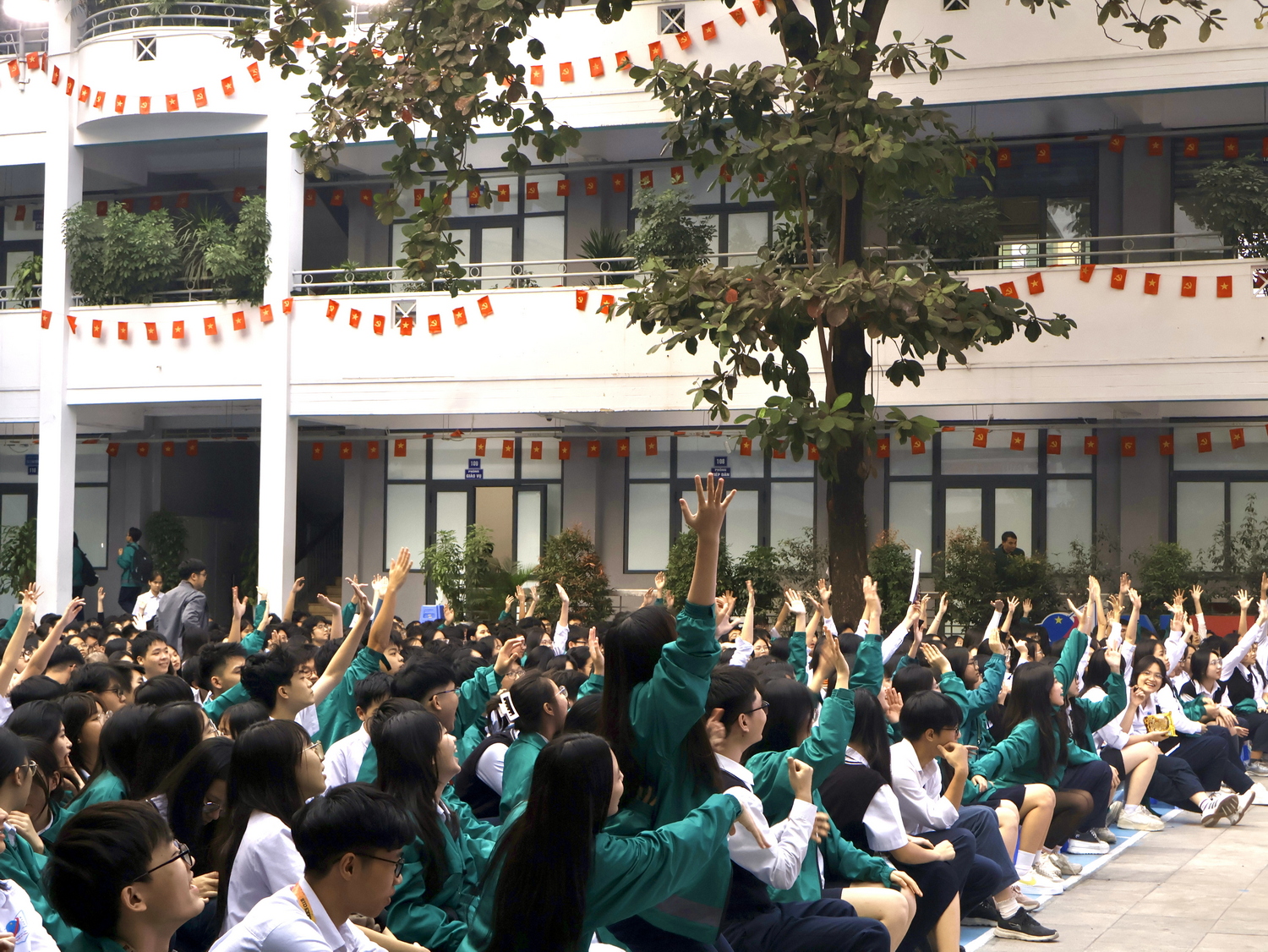 Học sinh Trường THCS và THPT Nguyễn Tất Thành hào hứng tham gia trả lời các câu hỏi trong phần chơi “Mật mã trái tim”