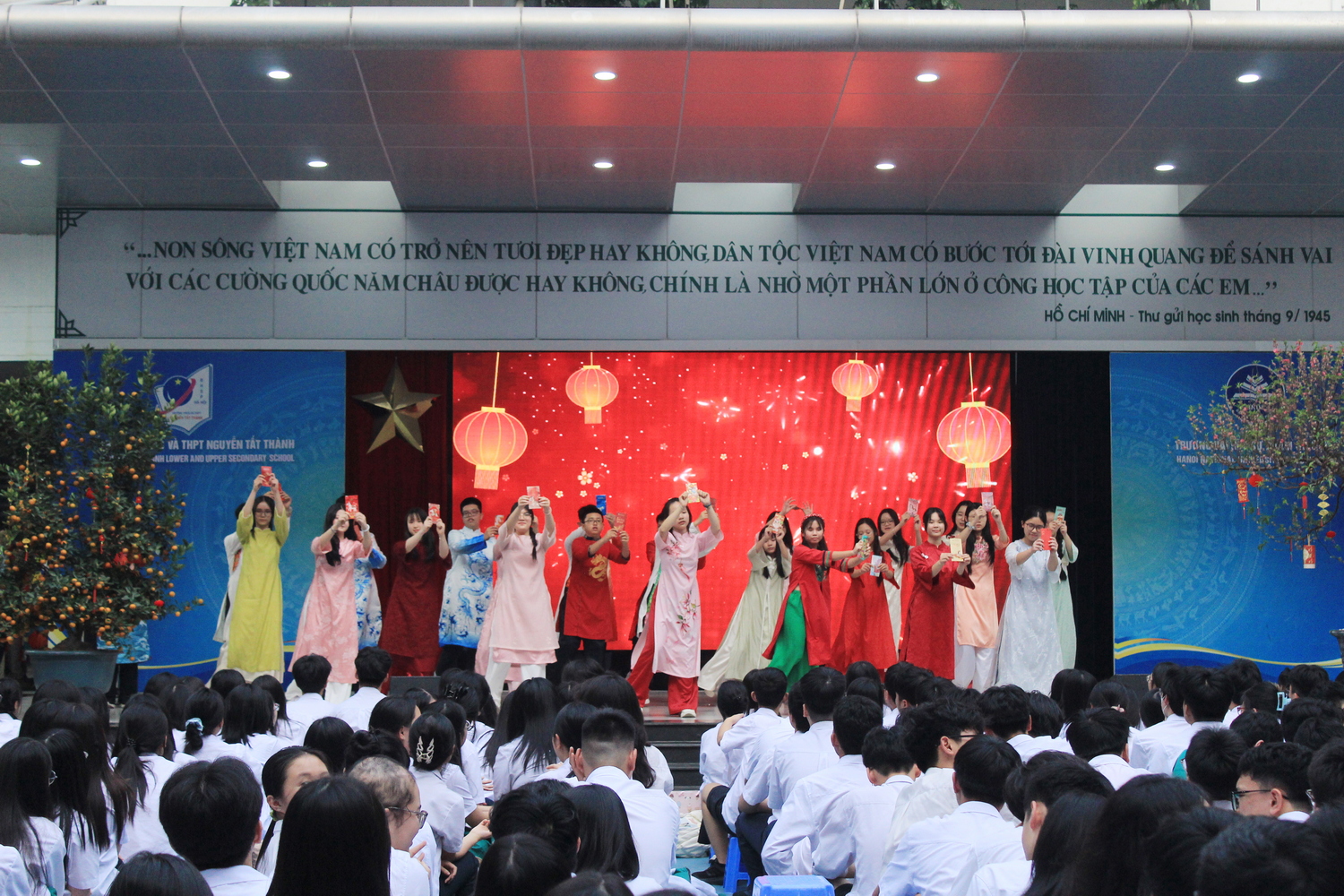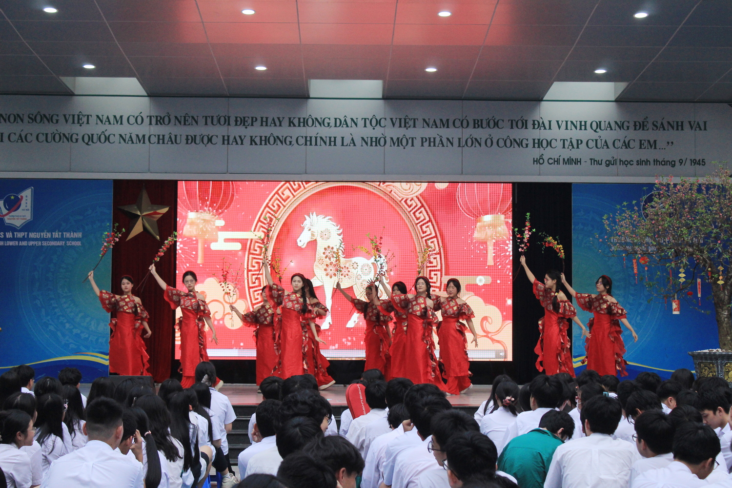 Giờ chào cờ đầu tiên của năm mới Bính Ngọ 2026 khép lại trong không khí rộn ràng, để lại nhiều cảm xúc đẹp trong lòng thầy cô và học sinh. Không chỉ mang đến những tiết mục nghệ thuật sôi động, chương trình còn lan tỏa tinh thần lạc quan, niềm tin và hi vọng vào một năm mới đầy khởi sắc. Từ những lời chúc đầu xuân, những nụ cười rạng rỡ đến những tràng pháo tay vang dội, tất cả đã tạo nên một khởi đầu thật ý nghĩa cho hành trình phía trước. Tin rằng, với nguồn năng lượng tích cực ấy, mỗi NTTer sẽ tiếp tục nỗ lực, học tập và trưởng thành hơn trong năm 2026. Một mùa xuân mới đã mở ra, mang theo những ước mơ, quyết tâm và những bước tiến vững vàng trên con đường chinh phục tri thức.
