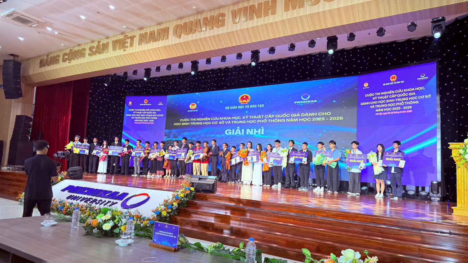 Ngày 20/3/2026, tại Trường Đại học Phenikaa (Hà Nội), cuộc thi Nghiên cứu Khoa học kỹ thuật (KHKT) cấp Quốc gia dành cho học sinh THCS và THPT năm học 2025-2026 đã diễn ra với sự tham gia của 242 dự án đến từ nhiều đơn vị trên cả nước. Giữa sân chơi trí tuệ quy mô toàn quốc, hai học sinh khối THCS của mái trường mang tên Bác là Nguyễn Hải Long (8A6) và Vũ Nguyễn Quang Anh (8A5) đã xuất sắc mang về 1 giải Nhì, góp phần khẳng định năng lực nghiên cứu, sáng tạo của học sinh nhà trường.