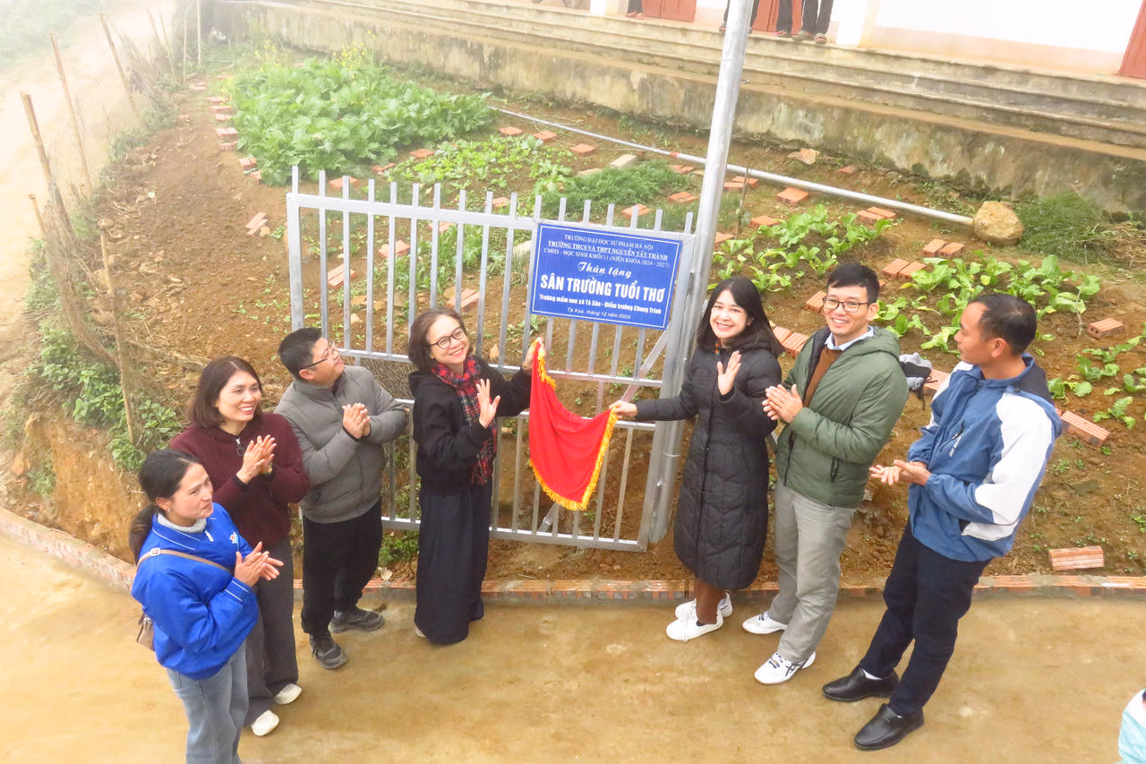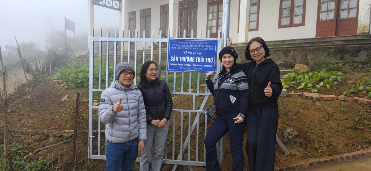 Không tham gia trực tiếp chuyến đi, nhưng cô Phạm Thị Hương Lan - tổ trưởng Chủ nhiệm Khối 11 vẫn theo dõi sát sao tiến trình của đoàn, nhìn những hình ảnh sân trường đã hoàn thiện, cô xúc động chia sẻ: Có nhìn hình ảnh của điểm trường Chung Trinh trước đây và nhìn hình ảnh của ngày hôm nay, mới thấy rõ điều kỳ diệu. Bao nhiêu năm các con không có sân chơi. Chiếc sân xinh xắn này đã cho các con được vui chơi, được chạy nhảy khi đến trường. Tôi thấy rất ấm lòng với món quà bền vững ở Tà Xùa hôm nay."