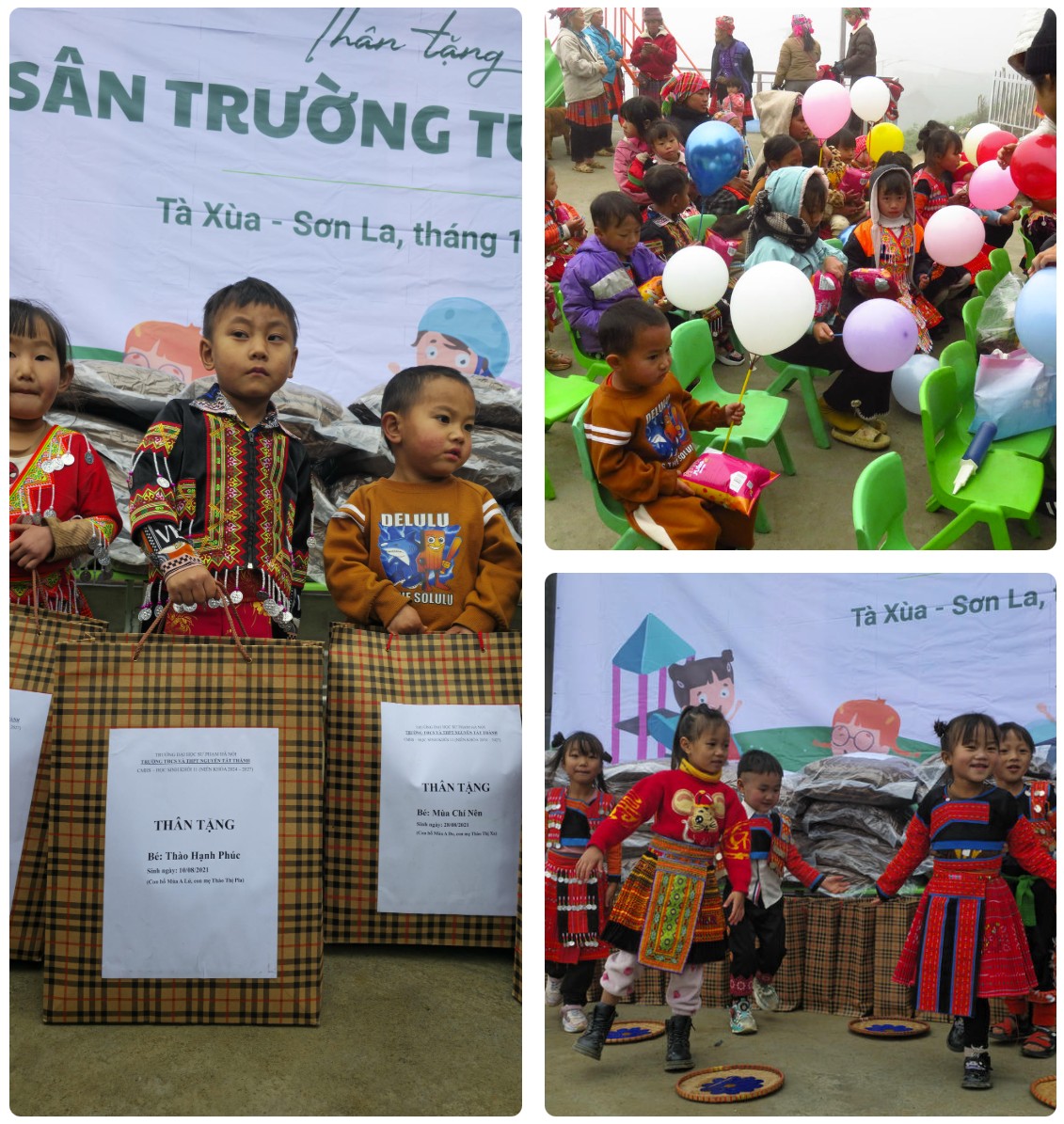 Để có “Sân trường tuổi thơ” cho các em bé Tà Xùa hôm nay, 1 năm trước đó, ở sân Trường THCS và THPT Nguyễn Tất Thành (Đại học Sư phạm Hà Nội), đã có một hội chợ nho nhỏ do thầy cô, cha mẹ học sinh và học sinh khối 11 tổ chức. Mỗi lớp một gian hàng, tất cả đều mộc mạc, chân thành, nhưng chỉn chu. Lợi nhuận từ hội chợ được tập trung lại để thực hiện các dự án vì cộng đồng, hướng về những nơi còn nhiều khó khăn.