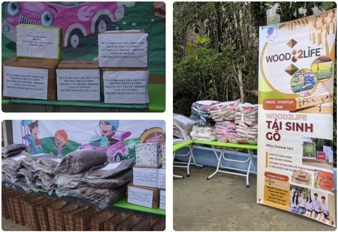 Cá nhân bà Liên, bà Mạnh - phụ huynh học sinh - còn tặng các em bé những món đồ chơi trong nhà và ngoài trời; nhóm học sinh lớp 11D2 tham gia dự án khởi nghiệp Wood2life cùng CLB mỹ thuật đã tái chế gỗ thải thành đồ dùng hữu ích cũng đã mua tặng các em hơn 30 chiếc áo ấm từ tiền bán sản phẩm của nhóm...