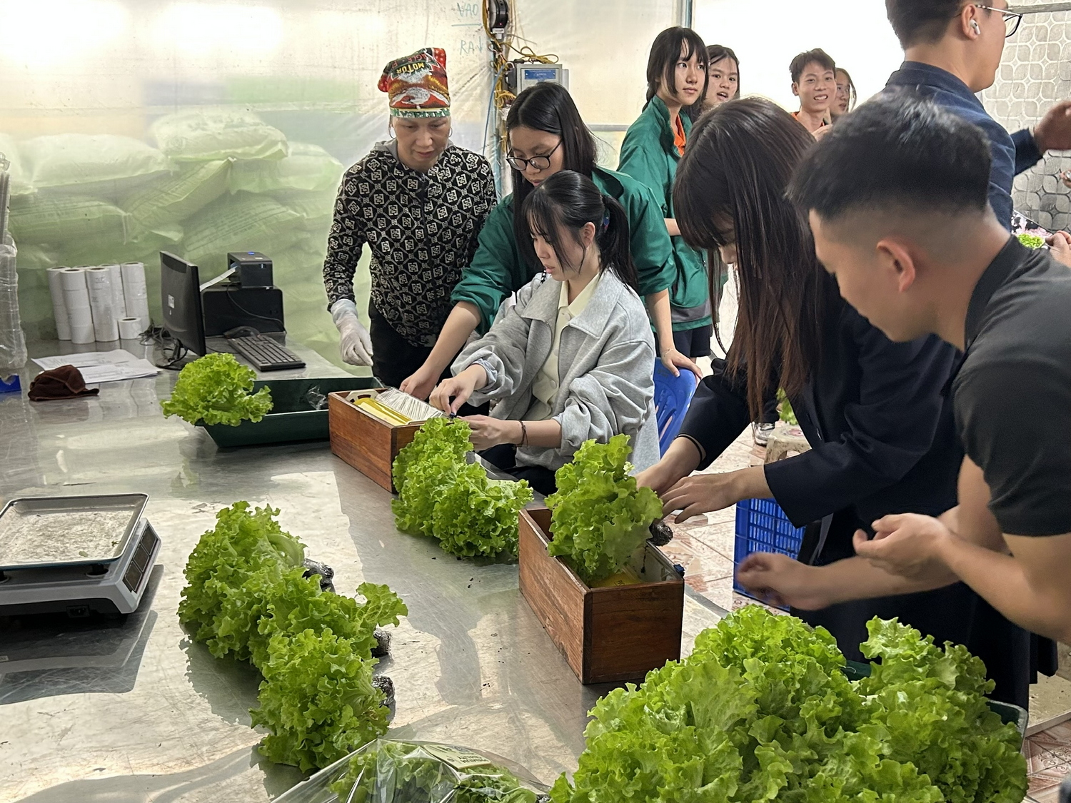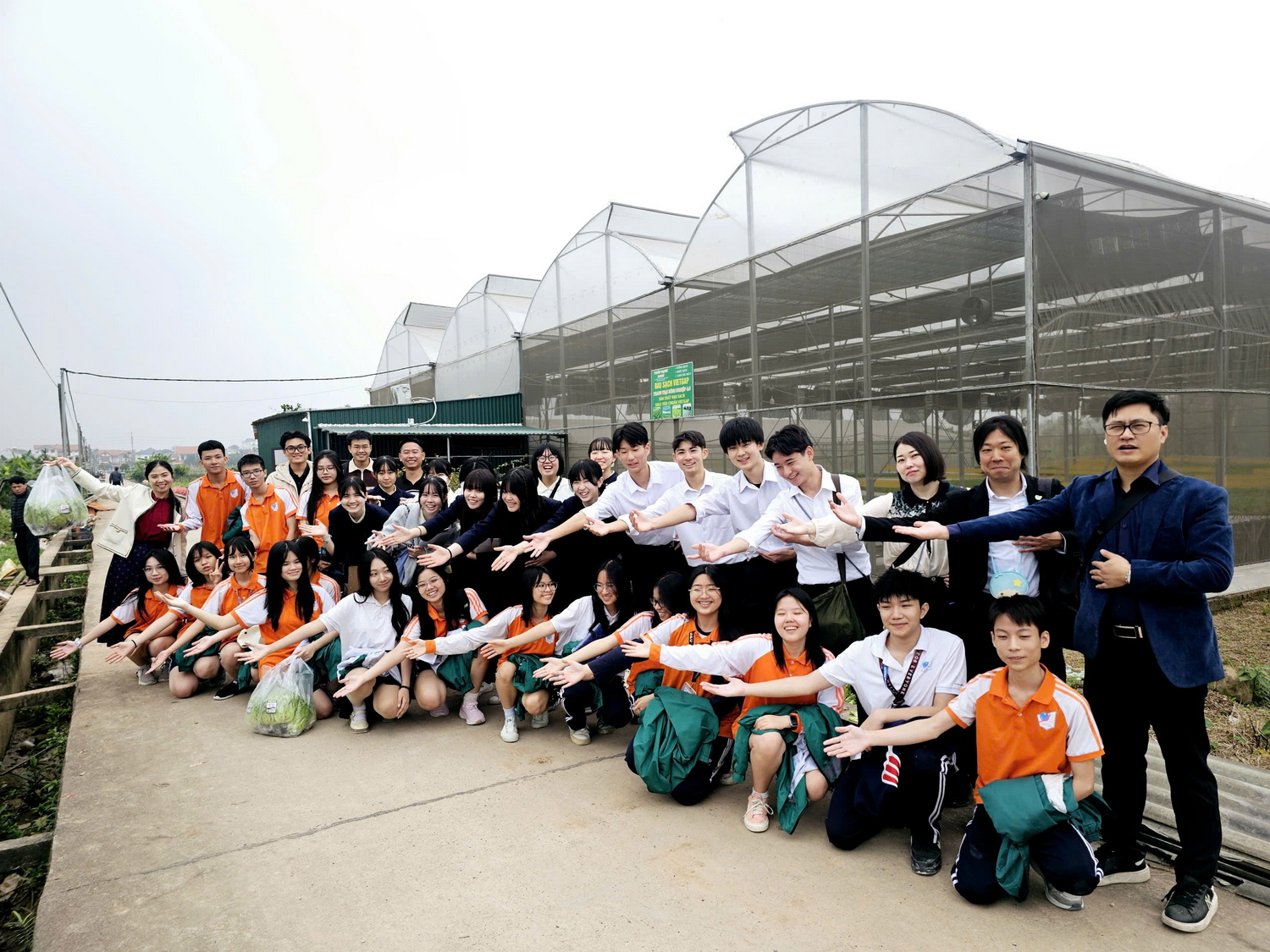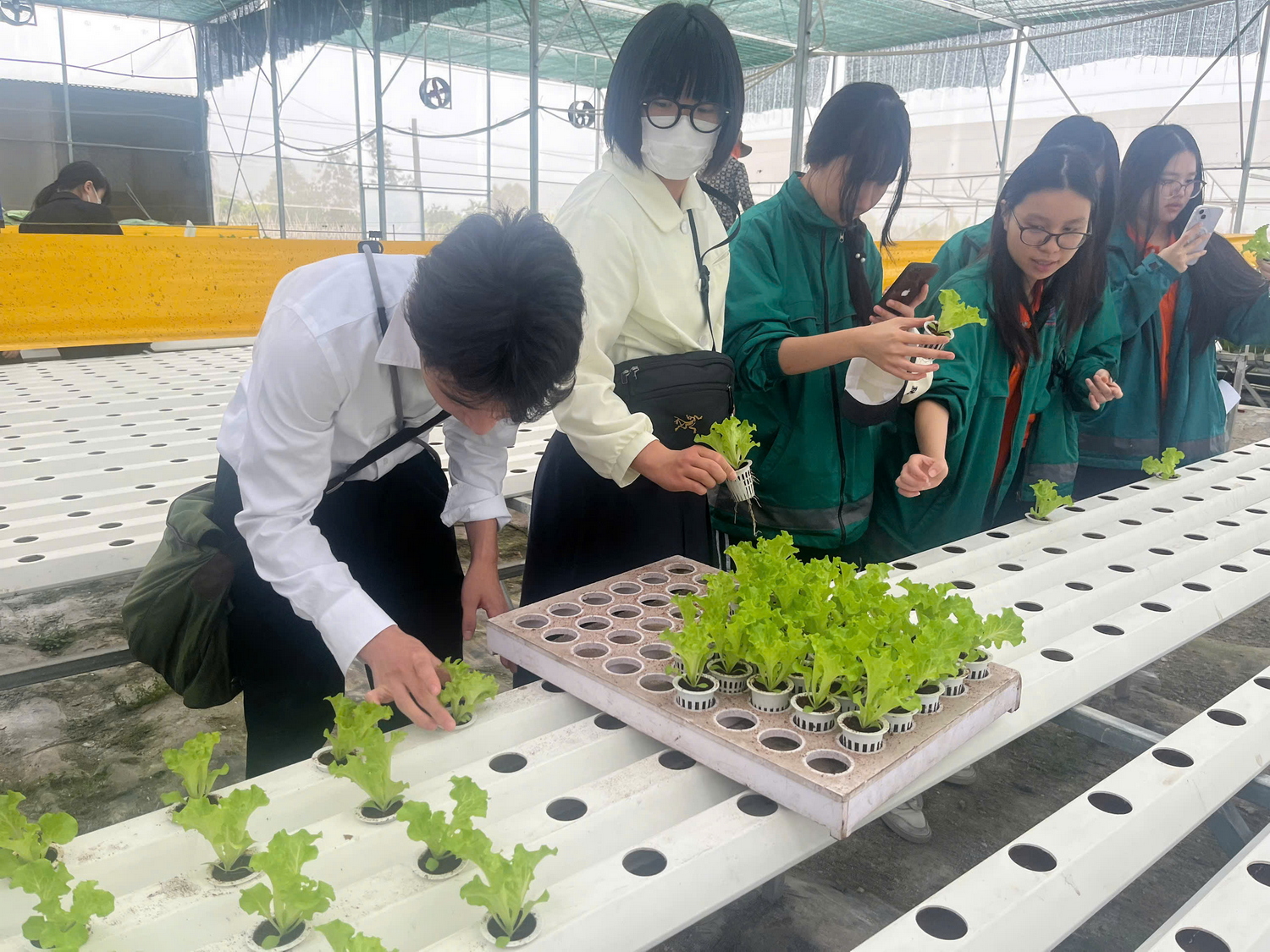 Học sinh trường Miyazaki tìm hiểu mô hình trồng rau trong khu nhà kính