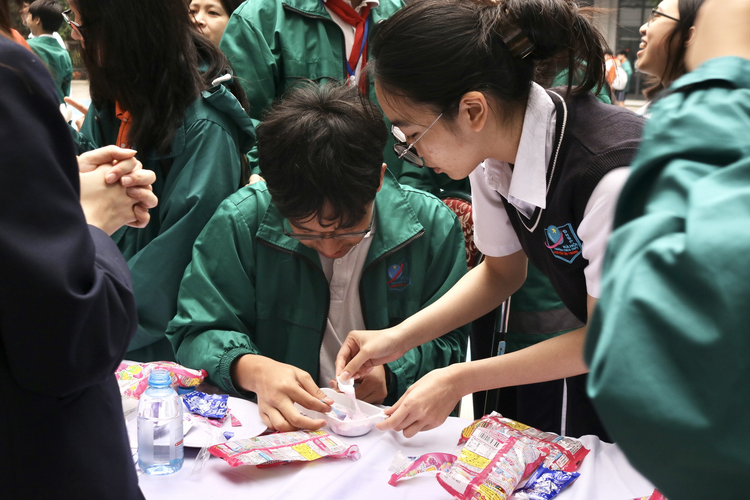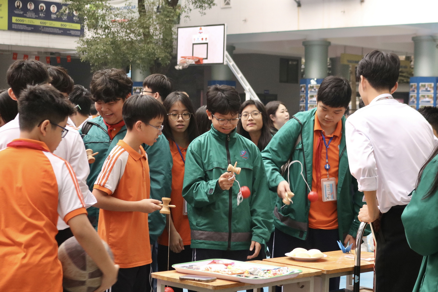 Bên cạnh đó, khu giao lưu còn mang đến những trải nghiệm ẩm thực nhẹ nhàng và đầy màu sắc. Học sinh có dịp thưởng thức những hương vị đặc trưng và tham gia các hoạt động sáng tạo liên quan đến đồ ăn, thức uống của Nhật Bản. Không gian giao lưu vì thế trở nên sôi động và hấp dẫn, góp phần giúp học sinh mở rộng hiểu biết về văn hóa quốc tế, đồng thời tạo nên những kỉ niệm đáng nhớ trong môi trường học đường.