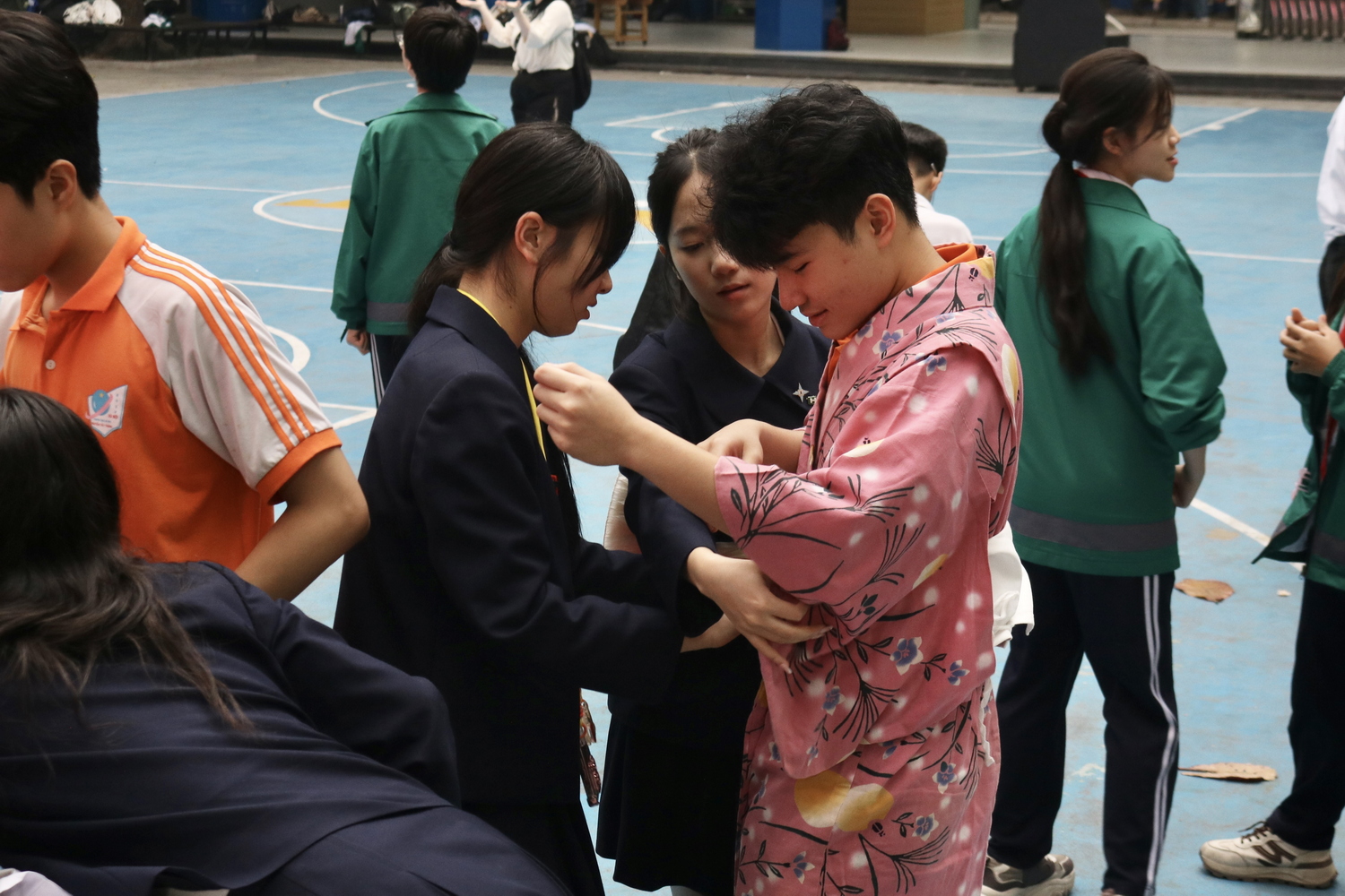 Học sinh trường Miyazaki hỗ trợ các NTTers mặc thử kimono