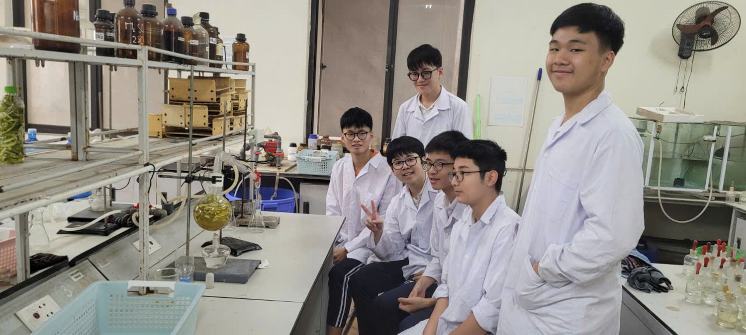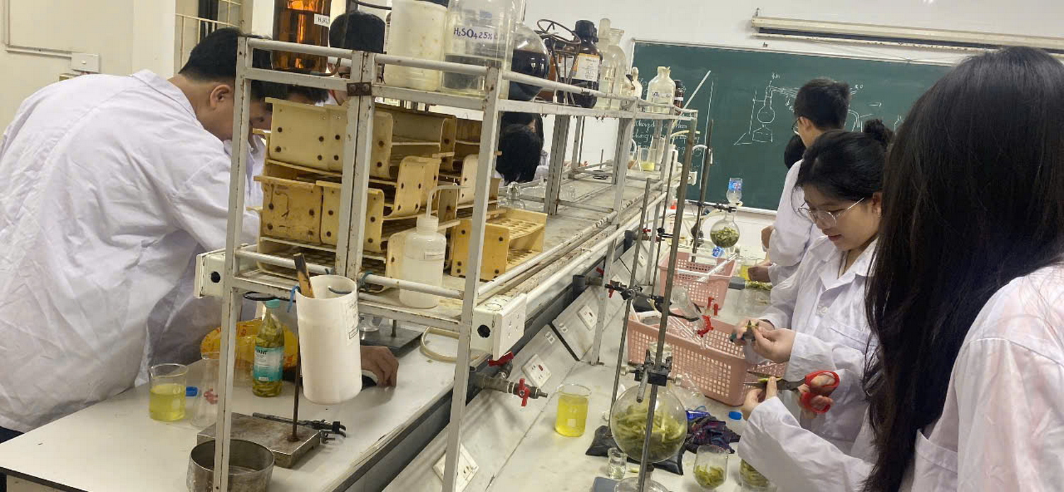 Dưới sự hướng dẫn tận tình của giảng viên và giáo viên bộ môn, học sinh được chia thành các nhóm nhỏ để trực tiếp tiến hành thí nghiệm. Các nhóm lần lượt sơ chế, cắt nhỏ vỏ bưởi, lắp ráp hệ thống chưng cất, theo dõi quá trình bay hơi, ngưng tụ và thu nhận tinh dầu. Mùi hương dịu nhẹ đặc trưng của tinh dầu bưởi lan tỏa trong phòng thí nghiệm đã mang lại không khí học tập vô cùng sôi nổi và hứng thú. Mỗi thao tác, từ điều chỉnh nhiệt độ đun cho đến quan sát lớp tinh dầu thu được, đều giúp học sinh rèn luyện tính cẩn thận, kiên nhẫn và chính xác.
