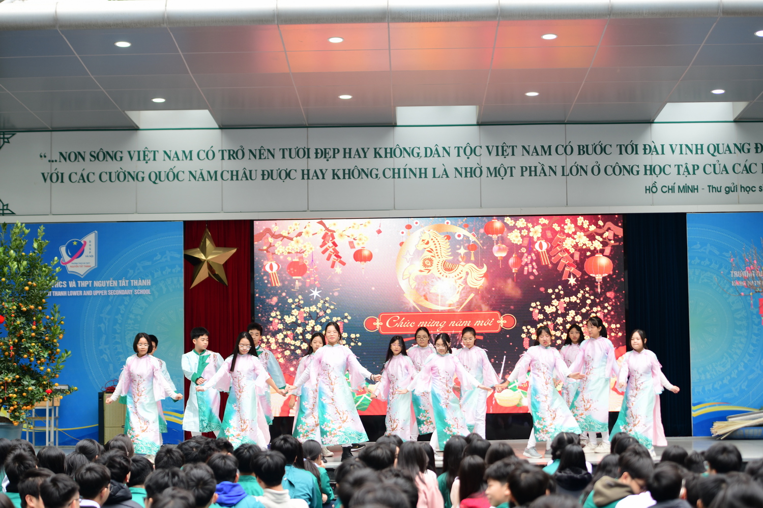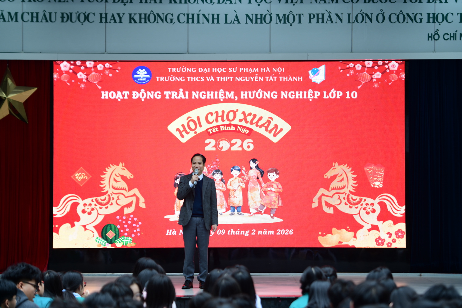 Chiều thứ Hai (09/2/2026), Trường THCS và THPT Nguyễn Tất Thành tổ chức chương trình “Hội chợ xuân” với nhiều hoạt động phong phú, thu hút sự tham gia của đông đảo thầy cô và học sinh, góp phần tạo nên không khí vui tươi, phấn khởi và giàu ý nghĩa trong những ngày đầu xuân. Là một nội dung nổi bật trong môn Hoạt động trải nghiệm, hướng nghiệp với chủ đề “Vận động cộng đồng cùng tham gia các hoạt động cho xã hội”, sự kiện tạo cơ hội để học sinh khối 10 học tập thông qua trải nghiệm thực tế. Không chỉ mang đến sân chơi bổ ích, đây còn là dịp để nhà trường thể hiện tinh thần gìn giữ, lan tỏa những giá trị văn hóa truyền thống tốt đẹp tới các NTT-ers.