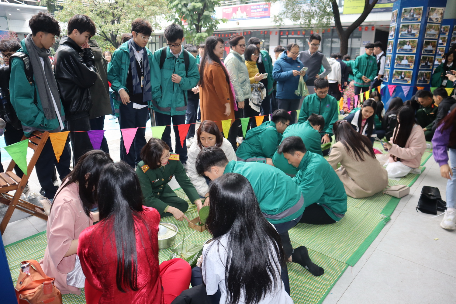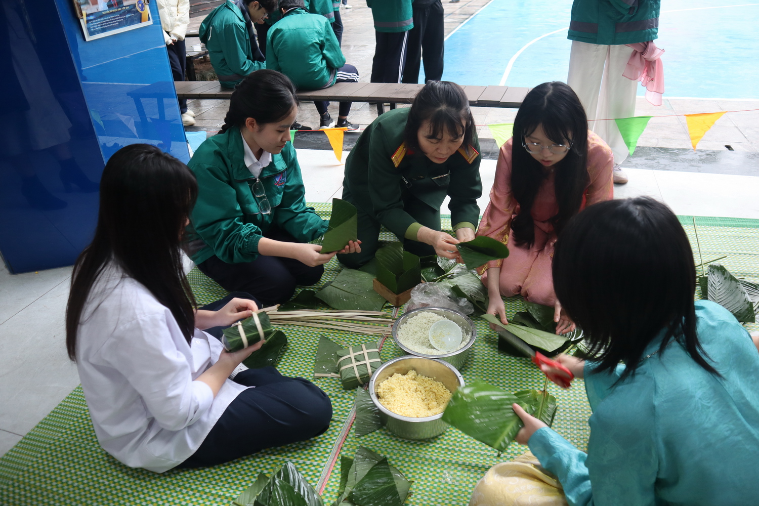 Cuộc thi gói bánh chưng đã thu hút sự tham gia hào hứng của các tập thể lớp, mang đến không khí sôi nổi và đầy hào hứng. Mỗi chiếc bánh không chỉ thể hiện sự khéo léo, tỉ mỉ mà còn phản ánh tinh thần sáng tạo và sự phối hợp ăn ý giữa các thành viên. Qua hoạt động này, học sinh có cơ hội trải nghiệm nét đẹp truyền thống, góp phần tái hiện không khí Tết cổ truyền một cách sinh động.
