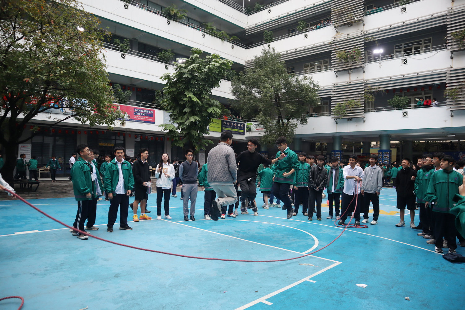 Trò chơi nhảy dây mang đến không khí sôi nổi, gắn kết giữa thầy và trò