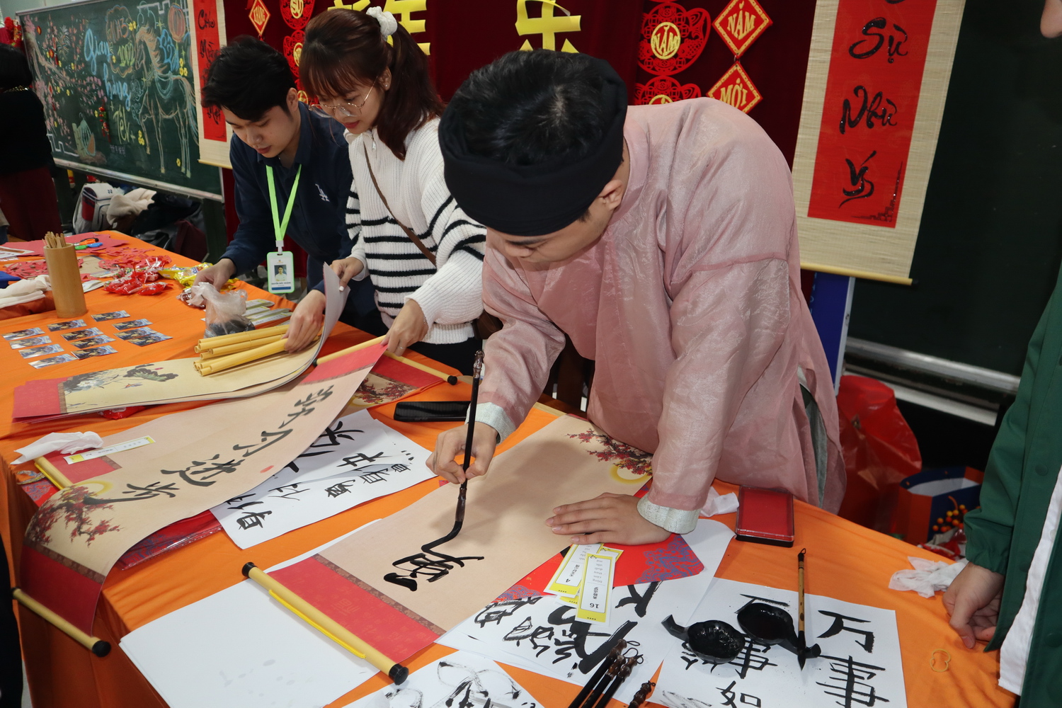 Gian thư pháp thu hút đông đảo học sinh và thầy cô, gửi gắm ước mong an lành, may mắn qua từng nét chữ đầu năm