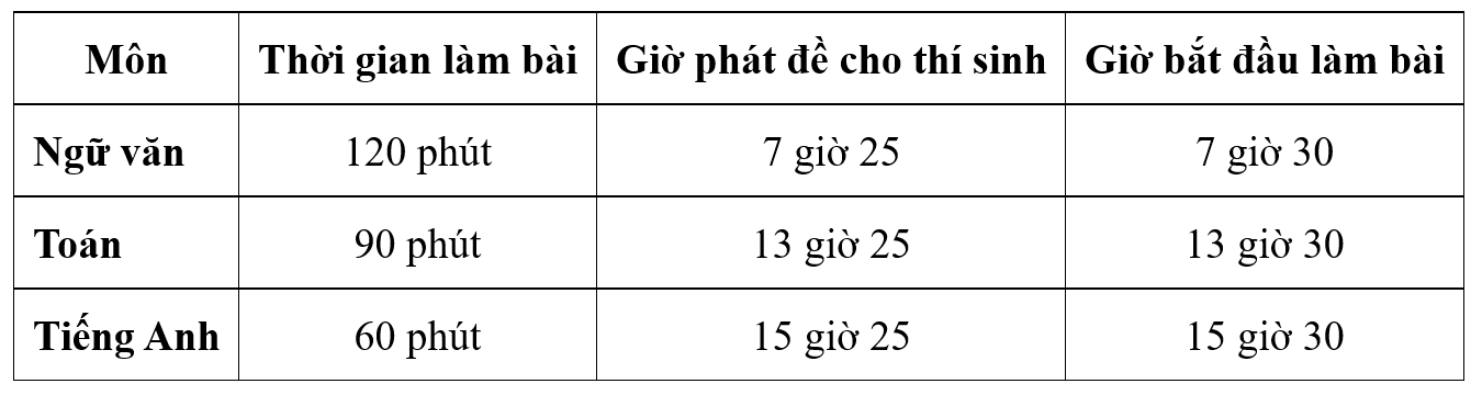 - 7h00: Gọi thí sinh vào phòng thi