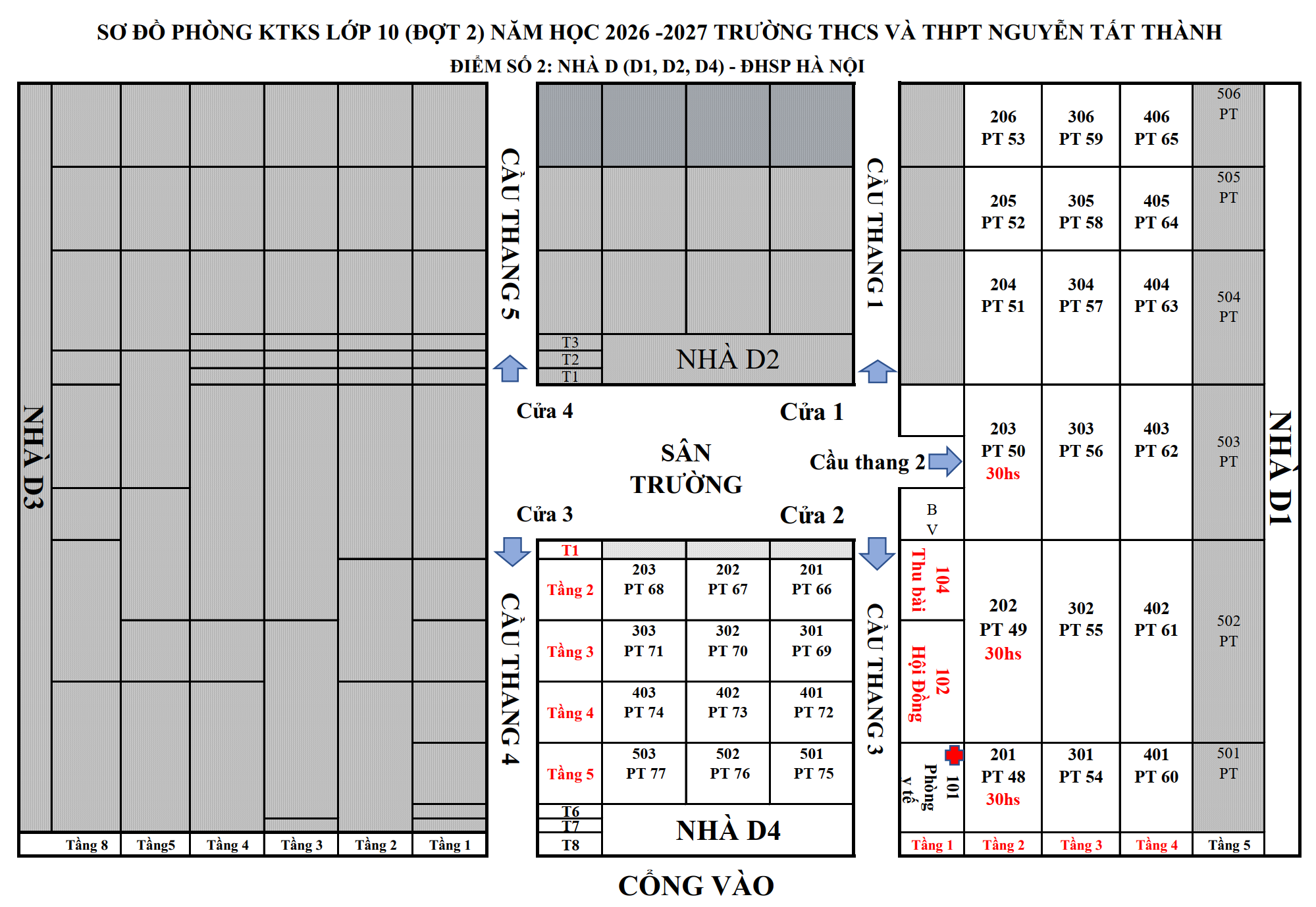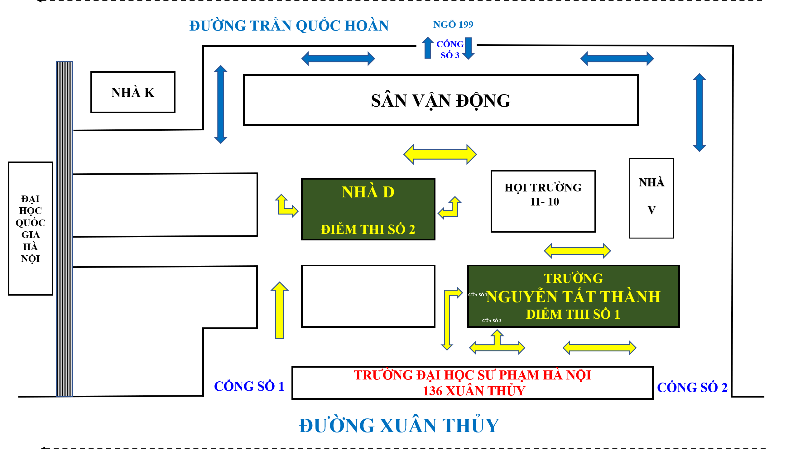 Từ phòng 48 đến phòng 77: tại Trường THPT Chuyên ĐH Sư phạm Hà Nội (cách trường Nguyễn Tất Thành 50m)