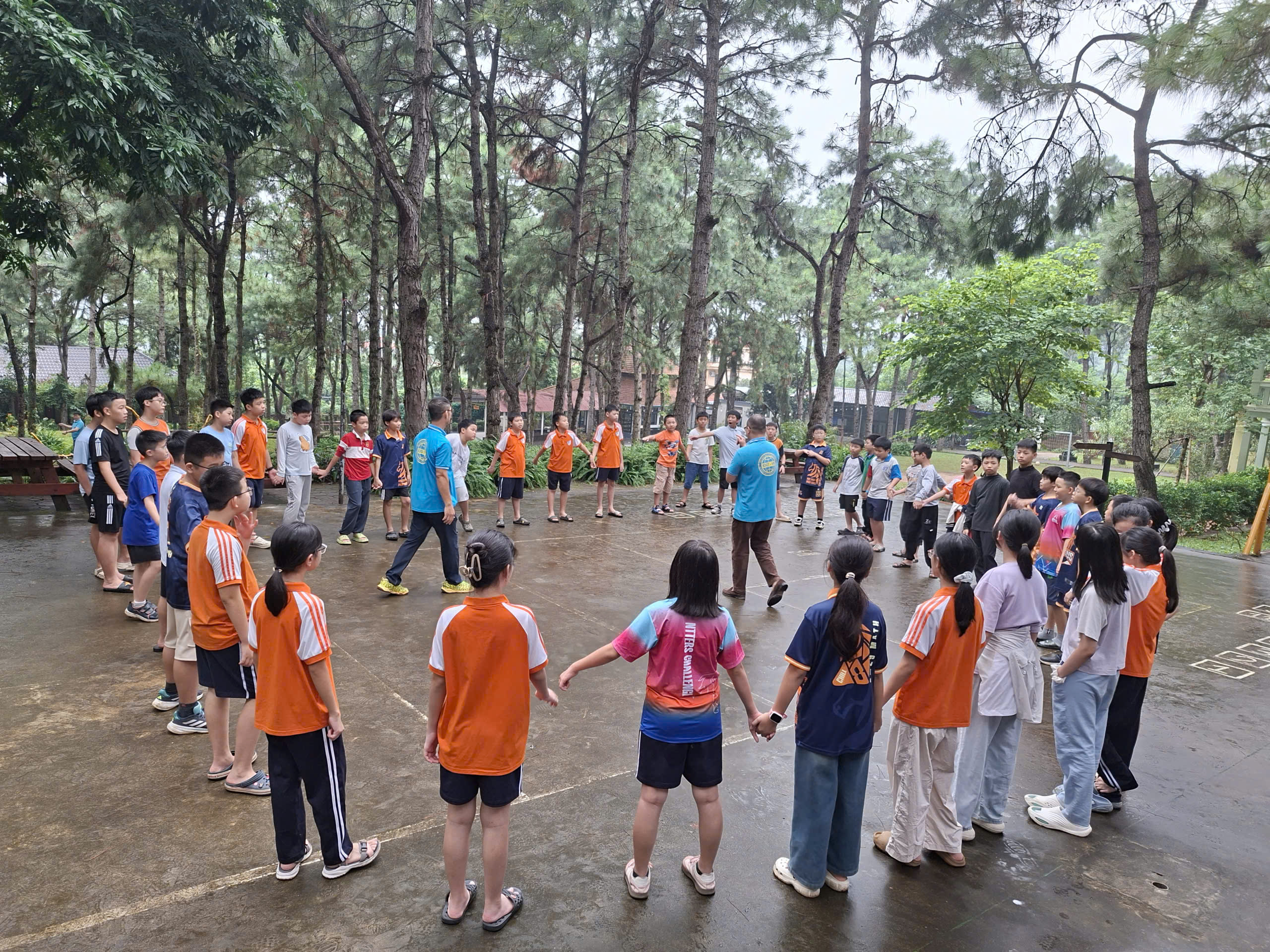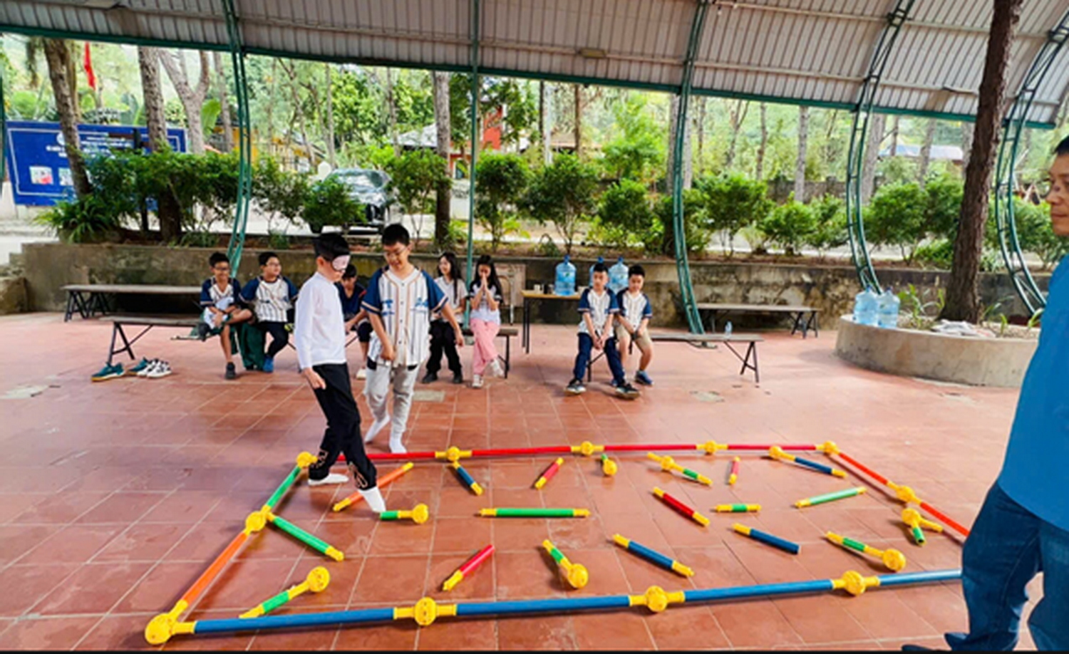 Học sinh tham gia các trò chơi mang tinh thần đồng đội, nhằm nâng cao tính đoàn kết và làm việc nhóm của các bạn
