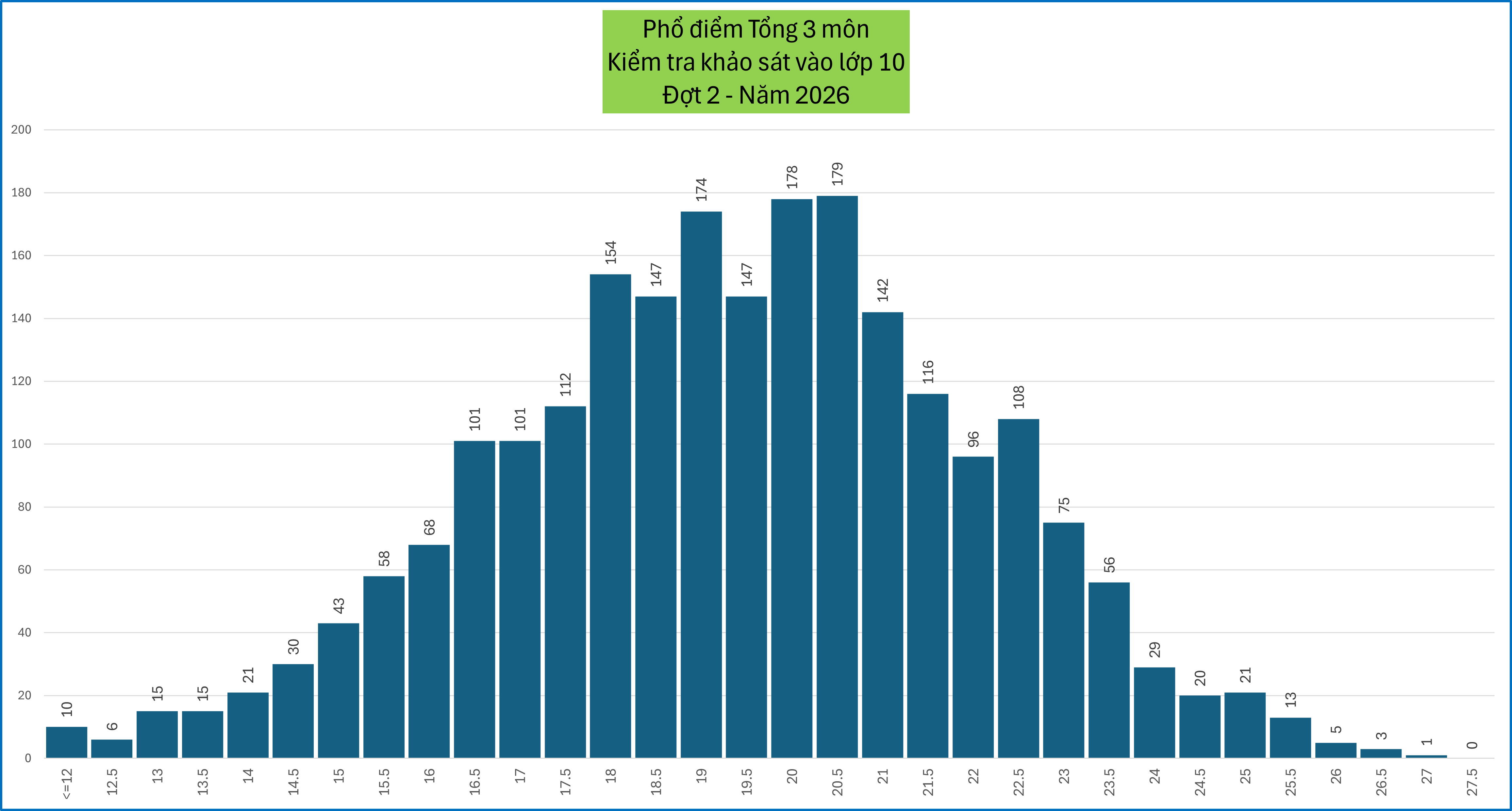 Phổ điểm môn Tổng 3 môn đợt 2 (chỉ thống kê với những học sinh tham dự đủ 3 môn):