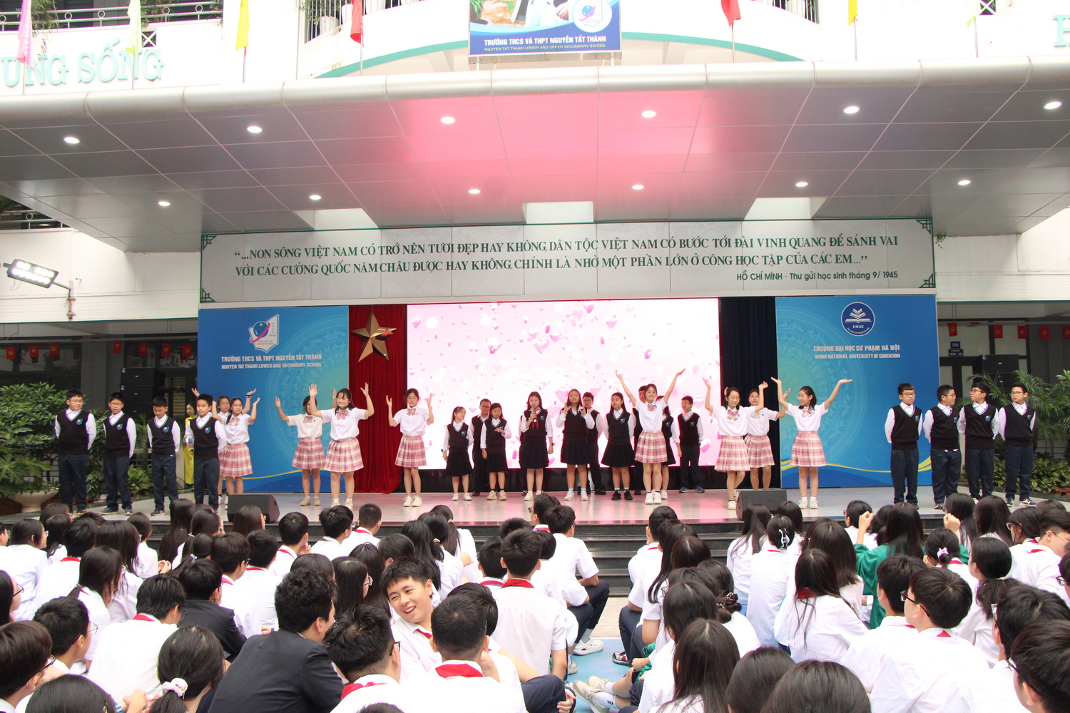 Thầy cô là những người cầm đuốc đèn soi sáng, dẫn lối cho chúng ta trên chuyến tàu tri thức, dìu dắt ta tới gần hơn với ngọn lửa đam mê cháy bỏng luôn bừng sáng bên trong mỗi người. Để tri ân những người thầy đã hiến dâng cả cuộc đời cho sự nghiệp giáo dục, vào thứ Hai (17/11/2025), Trường THCS và THPT Nguyễn Tất Thành rộn rã tổ chức giờ Chào cờ vô cùng đặc biệt với chủ đề: Tôn sư trọng đạo - Kỉ niệm 43 năm ngày Nhà giáo Việt Nam (20/11/1982 - 20/11/2025) do ba tập thể lớp 6A1, 6A3, 6A5 thực hiện.