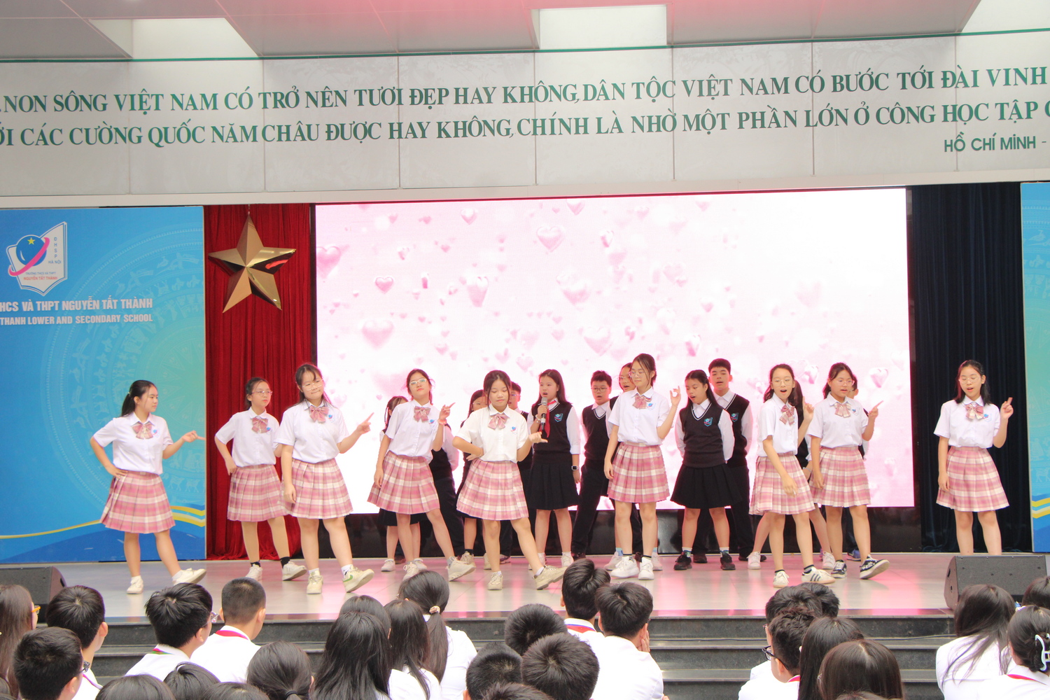Tiết mục hát múa của tập thể 3 lớp đã gửi gắm tình cảm chân thành và lòng tri ân sâu sắc đến những người thầy thầm lặng dìu dắt học trò trên hành trình tri thức