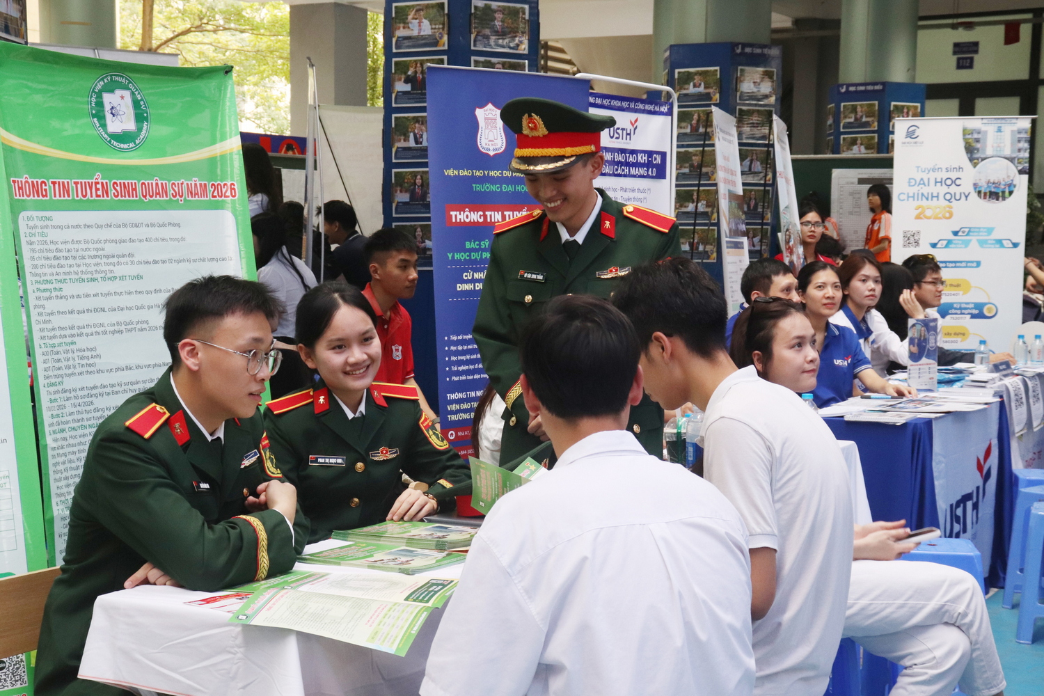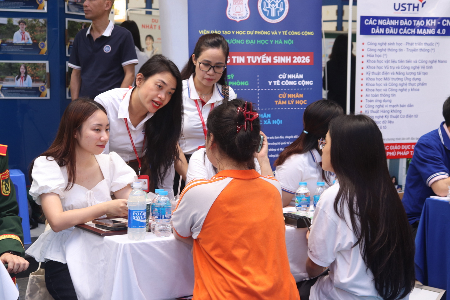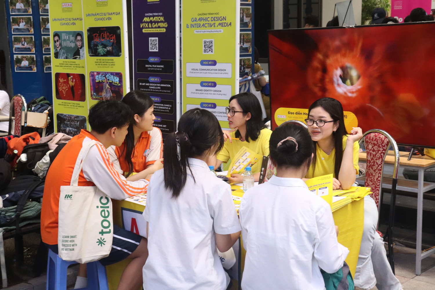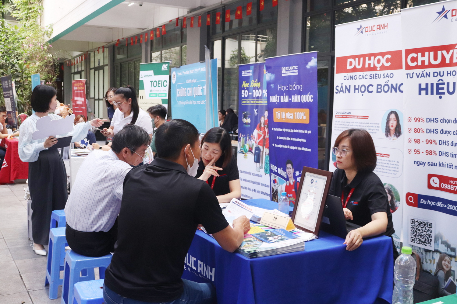 Sau buổi tọa đàm, những gian hàng tư vấn của các trường đại học, học viện, trung tâm đào tạo, trung tâm du học trong và ngoài nước đã tạo nên không gian trao đổi sôi nổi, thu hút đông đảo học sinh và cha mẹ học sinh tham gia. Tại đây, các đơn vị trực tiếp cung cấp thông tin về chương trình học, điều kiện tuyển sinh, cơ hội việc làm cũng như lộ trình du học, giúp học sinh có cái nhìn rõ ràng và thực tế hơn. Không chỉ dừng lại ở việc cung cấp thông tin, các gian hàng còn mang đến những giải pháp thiết thực, kịp thời giải đáp băn khoăn, hỗ trợ học sinh và phụ huynh tự tin hơn trong việc lựa chọn hướng đi phù hợp cho tương lai.