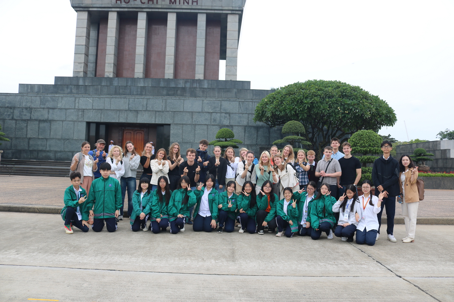 Vào thứ Sáu (24/10/2025) vừa qua, học sinh trường Frederiksborg Gymnasium (Đan Mạch) đã được tham quan di tích lịch sử mang đậm giá trị văn hoá của mảnh đất nghìn năm văn hiến - Lăng Chủ tịch Hồ Chí Minh. Bên cạnh đó, trận đấu bóng rổ giao lưu giữa học sinh hai trường vào thứ Hai (27/10/2025) đã để lại những ấn tượng sâu đậm và nhiều cảm xúc đáng nhớ. Những hoạt động ý nghĩa không chỉ giúp học sinh mở rộng kiến thức, tích lũy trải nghiệm thực tế, mà còn góp phần thắt chặt tình hữu nghị, gắn kết bền chặt giữa hai trường.