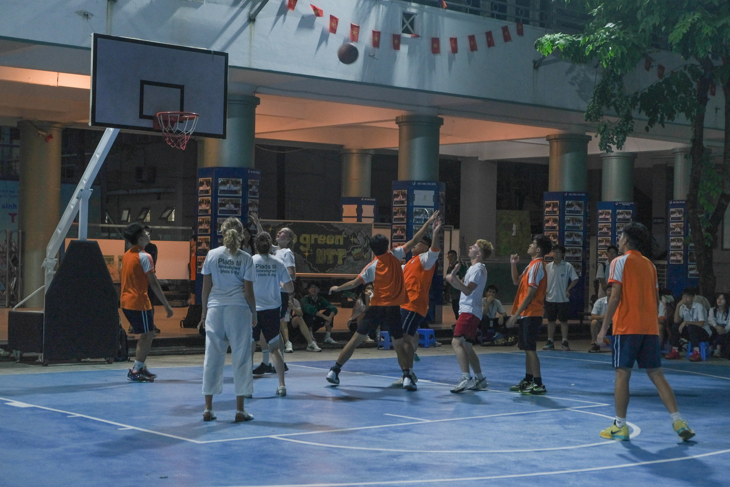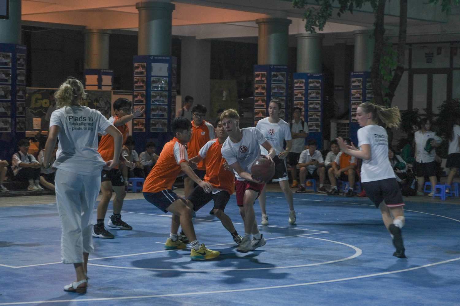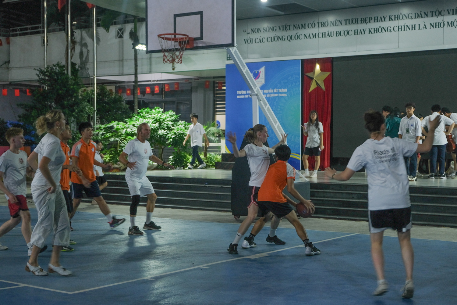 Ngay sau giờ chào cờ buổi chiều ngày 27/10/2025, tại sân trường THCS và THPT Nguyễn Tất Thành đã tổ chức một trận đấu giao hữu bóng rổ giữa học sinh trường Frederiksborg Gymnasium và học sinh CLB Bóng rổ (NBT) của mái trường mang tên Bác. Trận bóng diễn ra trong không khí đầy sôi nổi khi hai đội cùng hết mình, thể hiện tinh thần giao lưu thể thao nhiệt huyết.
