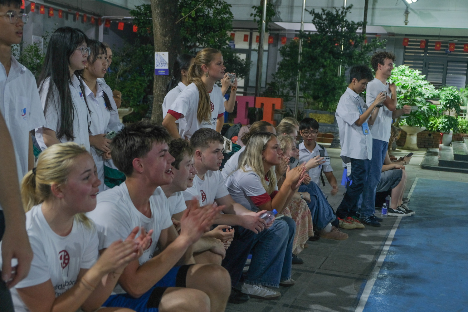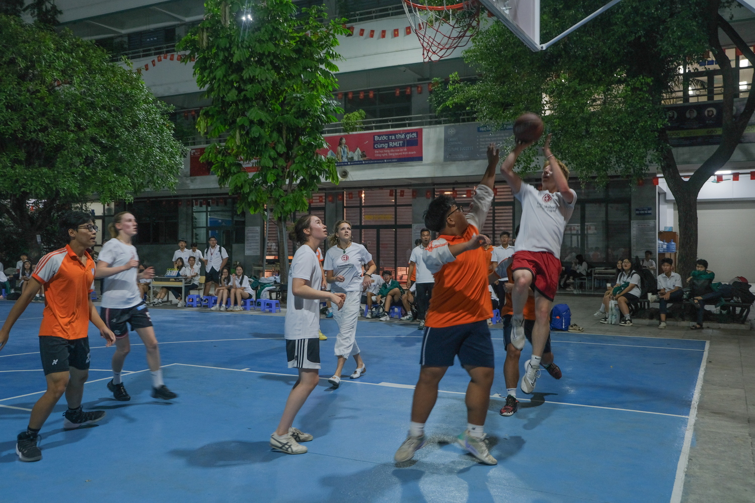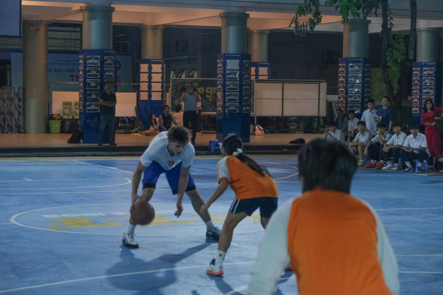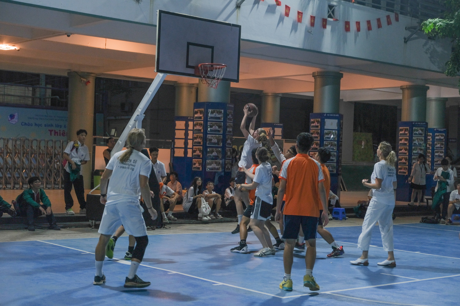 Ngay sau giờ chào cờ buổi chiều ngày 27/10/2025, tại sân trường THCS và THPT Nguyễn Tất Thành đã tổ chức một trận đấu giao hữu bóng rổ giữa học sinh trường Frederiksborg Gymnasium và học sinh CLB Bóng rổ (NBT) của mái trường mang tên Bác. Trận bóng diễn ra trong không khí đầy sôi nổi khi hai đội cùng hết mình, thể hiện tinh thần giao lưu thể thao nhiệt huyết.