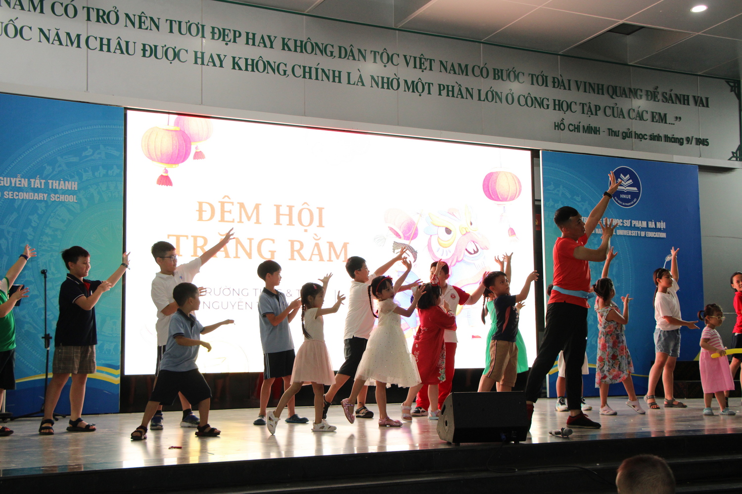 Hòa chung không khí rộn ràng của tết Trung thu trên khắp cả nước, tối ngày 3/10/2025, Trường THCS và THPT Nguyễn Tất Thành đã tổ chức chương trình “Vui hội trăng rằm” cho con em cán bộ, giáo viên nhân viên nhà trường.