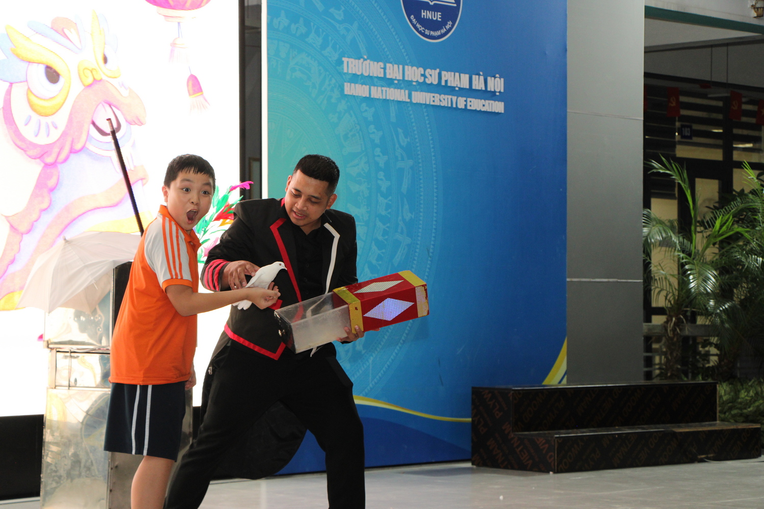 Bạn nhỏ rất ngạc nhiên khi trải nghiệm tham gia màn ảo thuật