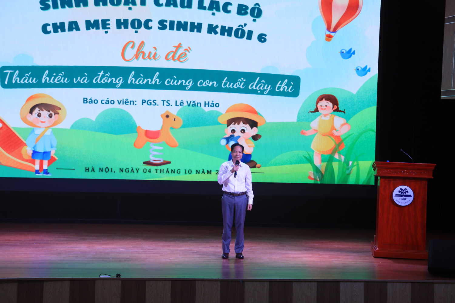 Trong buổi sinh hoạt, TS. Phạm Sỹ Cường - Hiệu trưởng nhà đã có những chia sẻ sâu sắc: “Điều khó khăn nhất của thế kỷ XXI là nuôi một đứa trẻ”. Trên lí thuyết, đó là hành trình kéo dài từ 18 đến 22 năm, nhưng trên thực tế, đó là nỗi trăn trở thường trực của mỗi bậc làm cha, làm mẹ. Thầy đã gửi gắm những nỗi niềm, rằng trong hành trình ấy, cha mẹ luôn phải đối diện với muôn vàn câu hỏi: Làm sao để thấu hiểu và cảm thông trước những “nổi loạn” của tuổi dậy thì? Làm sao để vừa đồng hành, vừa là người bạn của con? Bởi lẽ, sự thấu hiểu và đồng hành của cha mẹ chính là ánh sáng dẫn lối, giúp con trẻ vượt qua những biến động nội tâm, phát triển và trưởng thành với một tâm hồn an lành, nhân cách vững vàng.