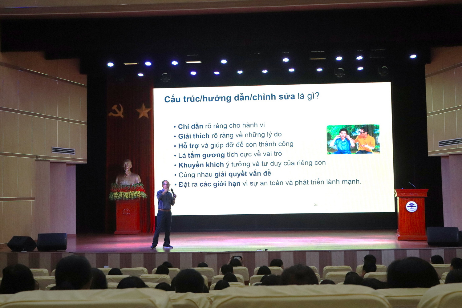 Thông qua các ví dụ sinh động, PGS.TS. Lê Văn Hảo giúp phụ huynh nhận diện các phong cách nuôi dạy con: từ độc đoán, buông lỏng, đến uy quyền và chỉ ra tác động của từng cách tiếp cận. Nếu sự cứng nhắc dễ khiến trẻ thu mình, nổi loạn hoặc sa sút học tập, thì phong cách uy quyền - kết hợp giữa kỉ luật và thấu hiểu - lại giúp trẻ phát triển lành mạnh, tự tin và có kĩ năng xã hội tốt hơn. Bên cạnh đó, diễn giả chia sẻ những phương pháp định hướng, hỗ trợ và đồng hành cùng con hiệu quả: việc chỉ dẫn rõ ràng, làm gương tích cực đến khuyến khích tư duy độc lập của trẻ.
