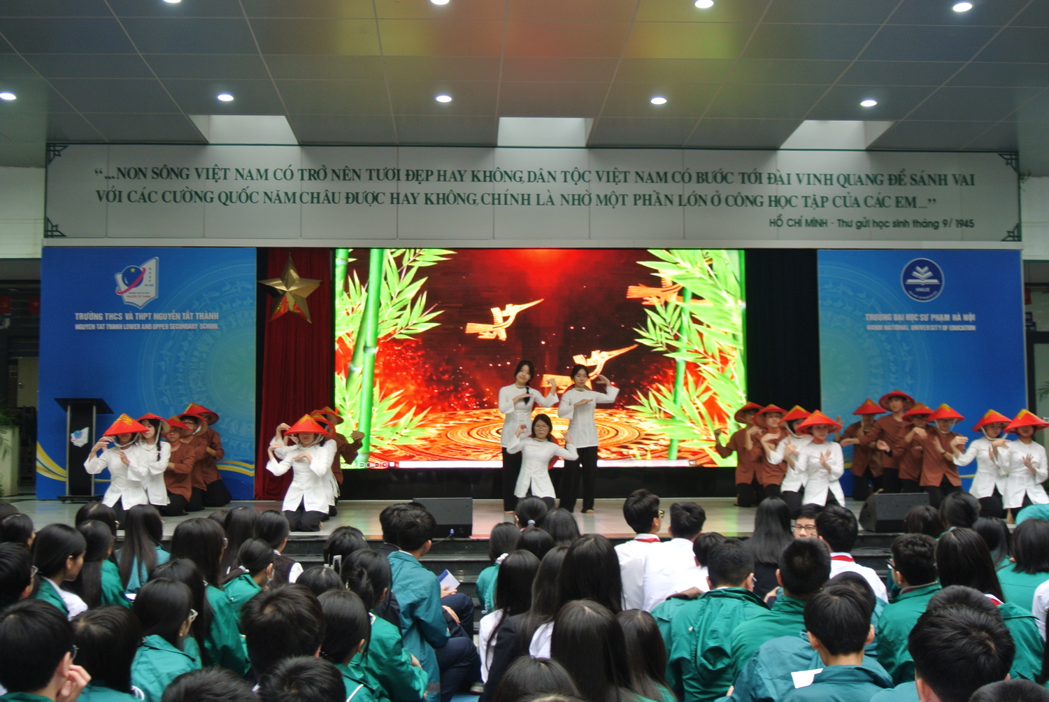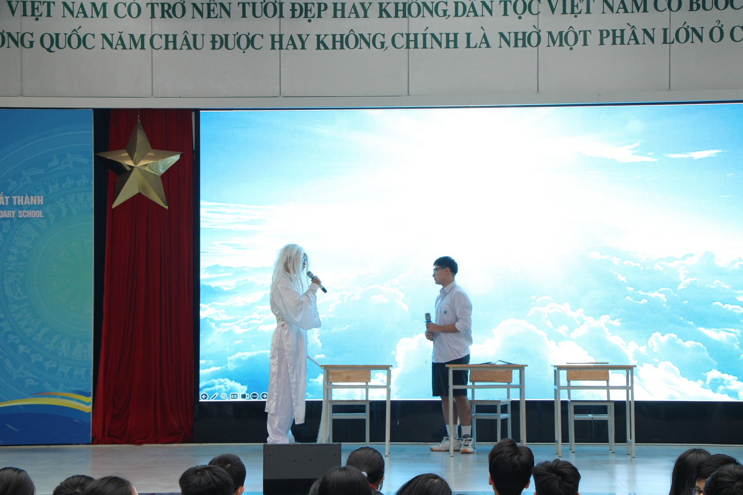 Tiếp nối không khí đó là liên khúc mashup “Tôi là người Việt Nam - Quê hương Việt Nam - Kén cá chọn canh” do tập thể lớp 11A2 biểu diễn. Bằng sự hòa quyện giữa tinh thần hiện đại và nét đẹp truyền thống, tiết mục đã thổi bừng niềm tự hào dân tộc, khơi dậy ý thức trách nhiệm của mỗi người trẻ trong thời đại đất nước đang vươn mình mạnh mẽ. Tiết mục như một lời khẳng định: trách nhiệm của thế hệ trẻ không chỉ thể hiện trong lớp học, mà còn mở rộng thành trách nhiệm chung tay đóng góp cho sự phát triển của Tổ quốc trong tương lai - bằng tri thức, sự năng động và tinh thần cống hiến.