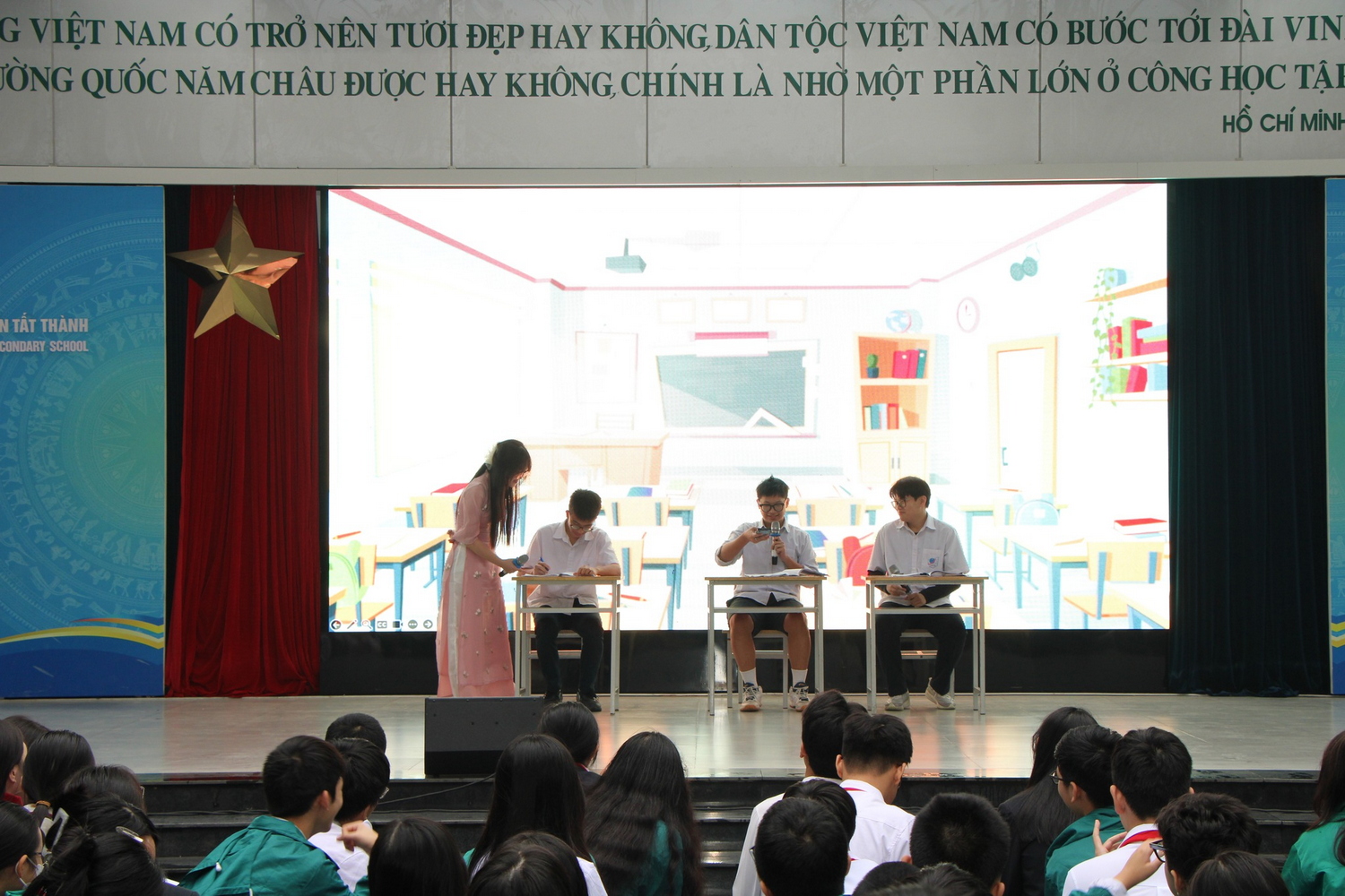 Trong dòng chảy của cuộc sống hiện đại, khi cơ hội rộng mở song thách thức cũng nhiều hơn, trách nhiệm trở thành chiếc la bàn định hướng để mỗi người trẻ biết mình đang đi đâu, cần làm gì và sẽ trở thành con người như thế nào. Cũng bởi ý nghĩa quan trọng ấy, sáng thứ Hai (ngày 1/12/2025), giờ sinh hoạt dưới cờ với chủ đề “Trách nhiệm” tại Trường THCS và THPT Nguyễn Tất Thành được thực hiện bởi hai tập thể 11A2, 11D3 và CLB Giao tiếp (ROV). Chương trình chào cờ như một lời nhắc nhở học sinh cùng cảm nhận ý nghĩa của trách nhiệm, từ những việc nhỏ bé hàng ngày đến những quyết định định hình tương lai.