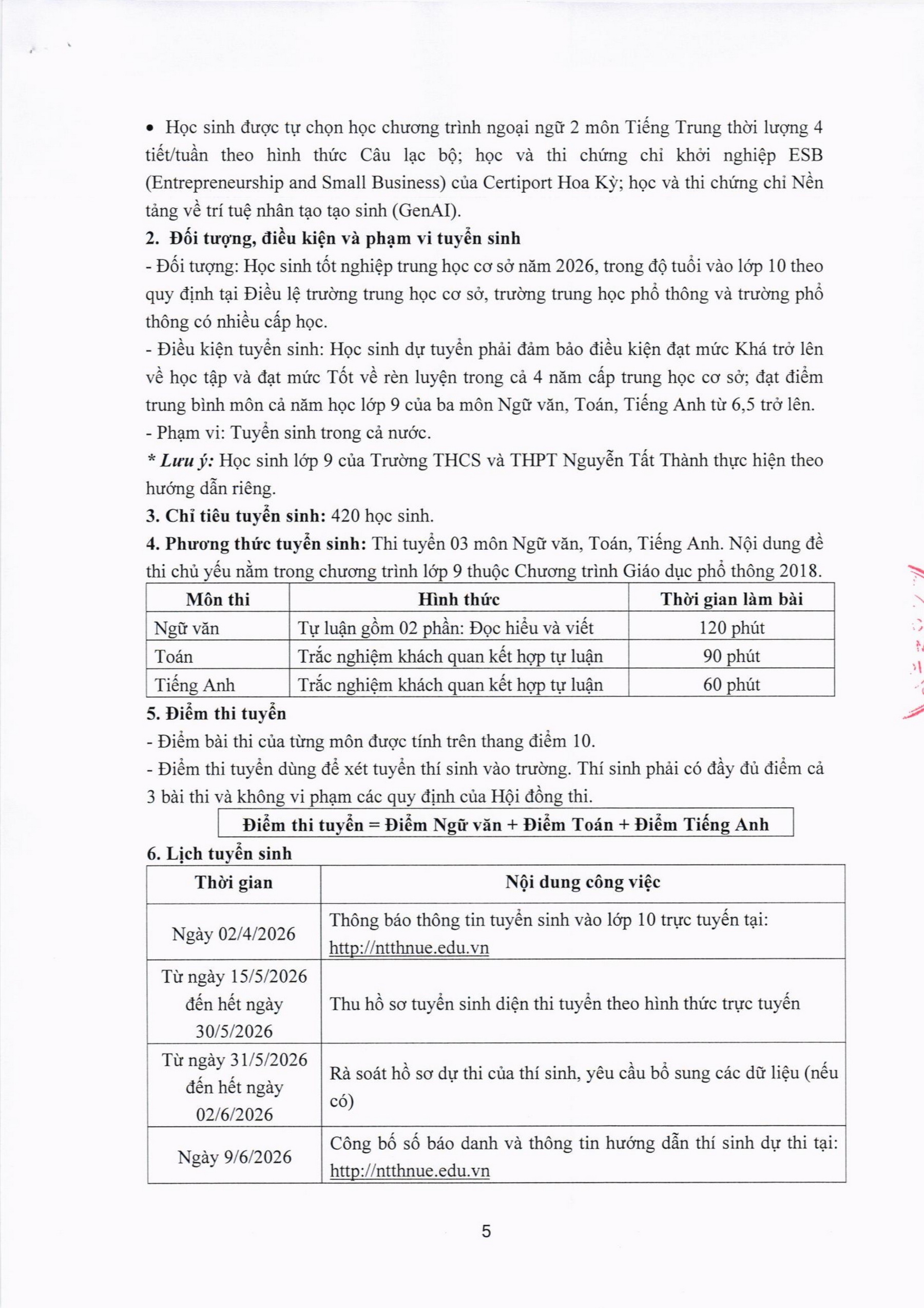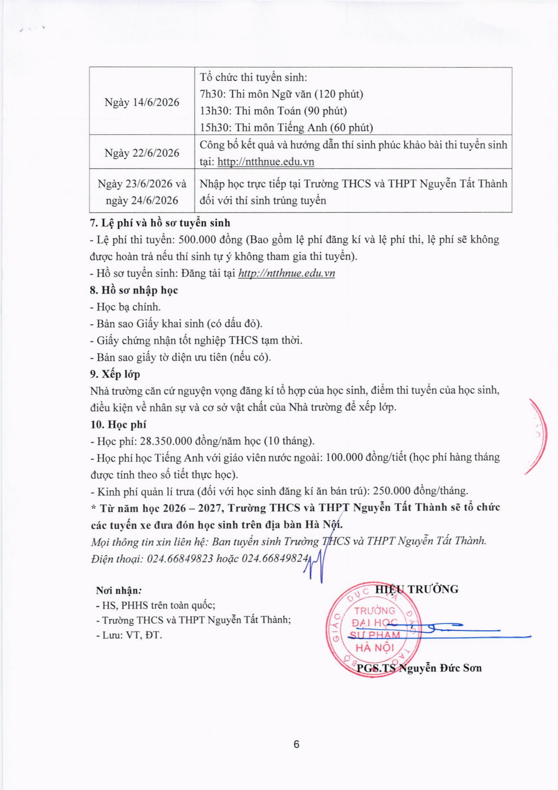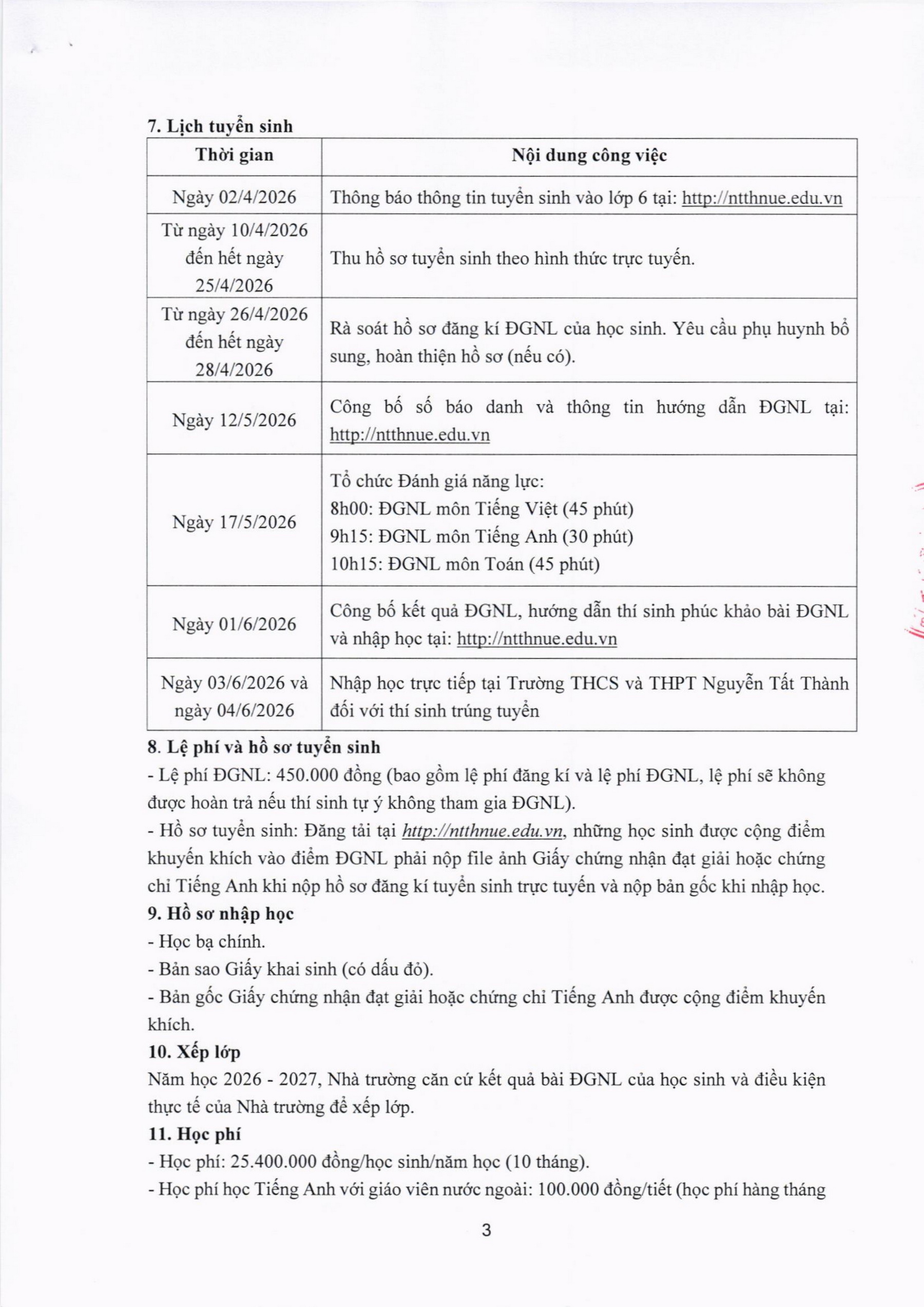 Hướng dẫn thí sinh dự thi tuyển sinh vào lớp 10 trường THCS và THPT Nguyễn Tất Thành năm học 2025 - 2026